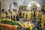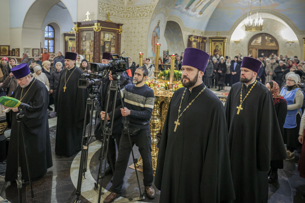 Его Высокопреосвященству сослужили епископ Кронштадтский Вениамин, секретарь епархиального управления протоиерей Сергий Куксевич, протоиерей Петр Мухин, благочинный Невского округа, настоятель иерей Димитрий Малиновский с клиром и другие священнослужители.