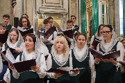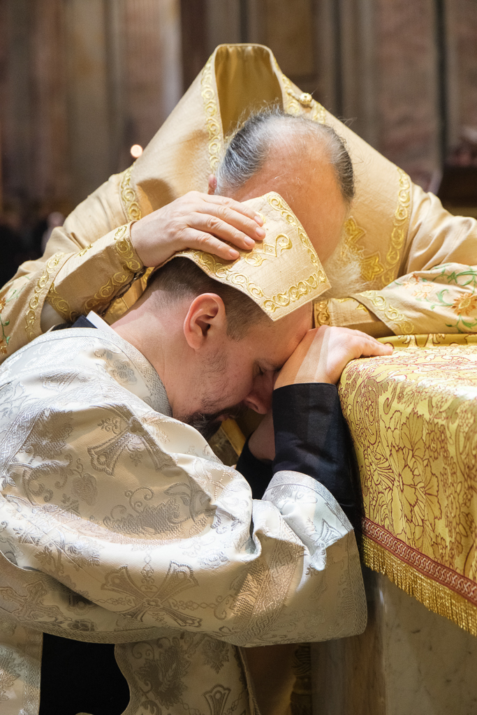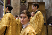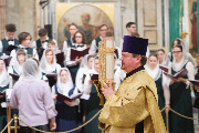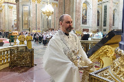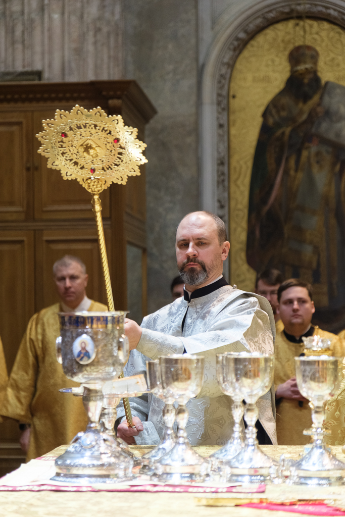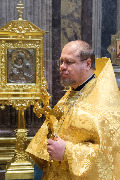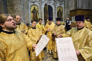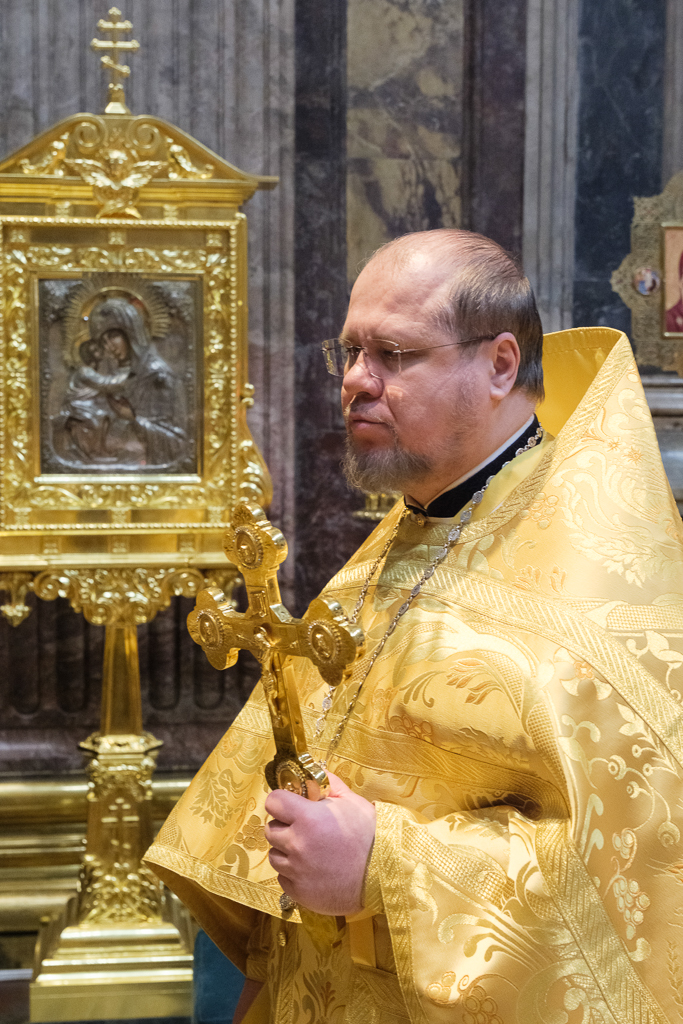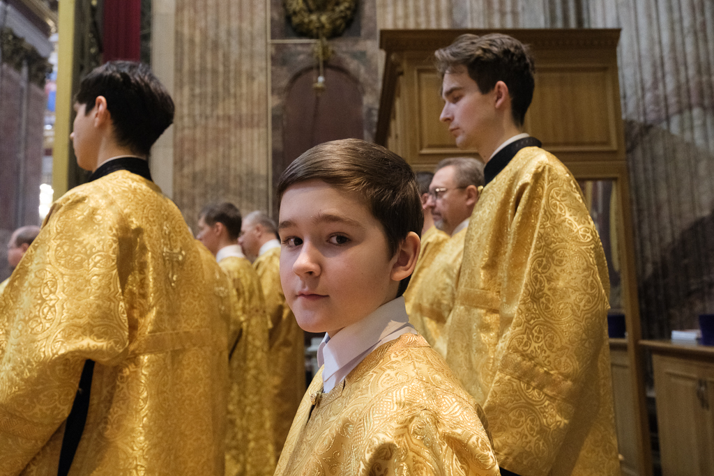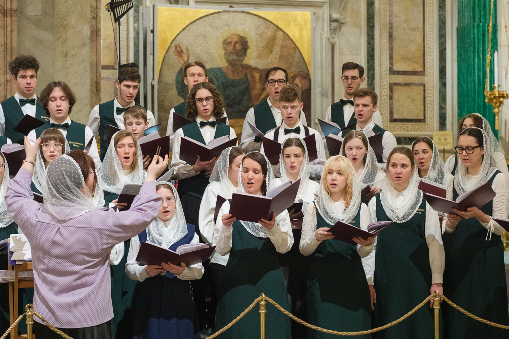 Пели хор собора под управлением Ольги Ширяевой, молодежный хор под управлением Ларисы Христич и любительский под управлением Анастасии Коздринь.Чтец храма святых Петра и Февронии Муромских в Петергофе Владимир Рябов был рукоположен во диакона.