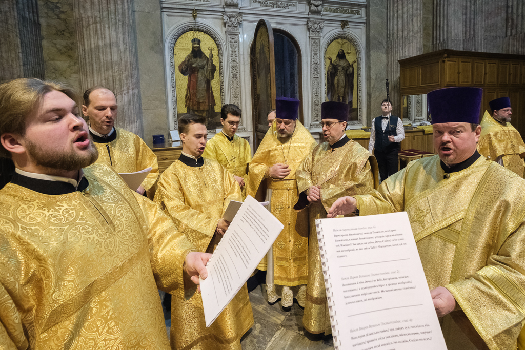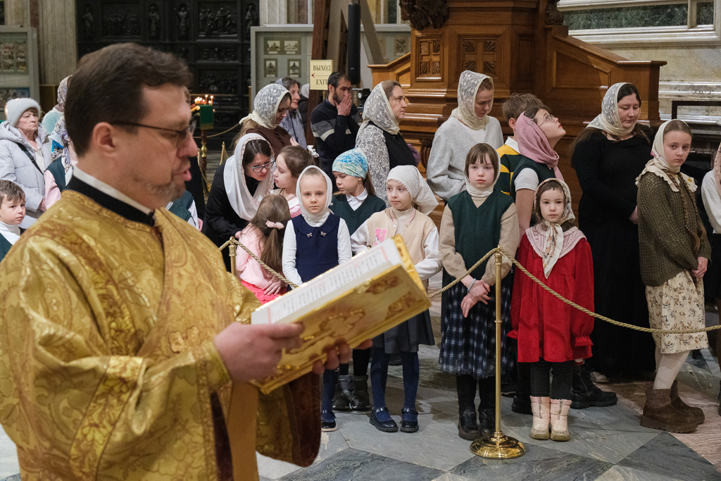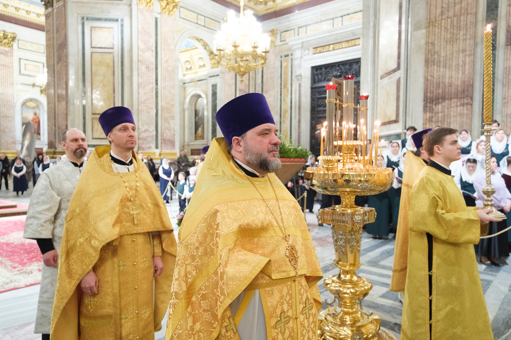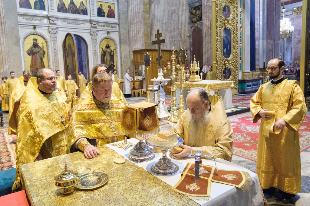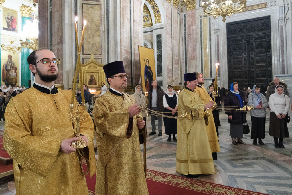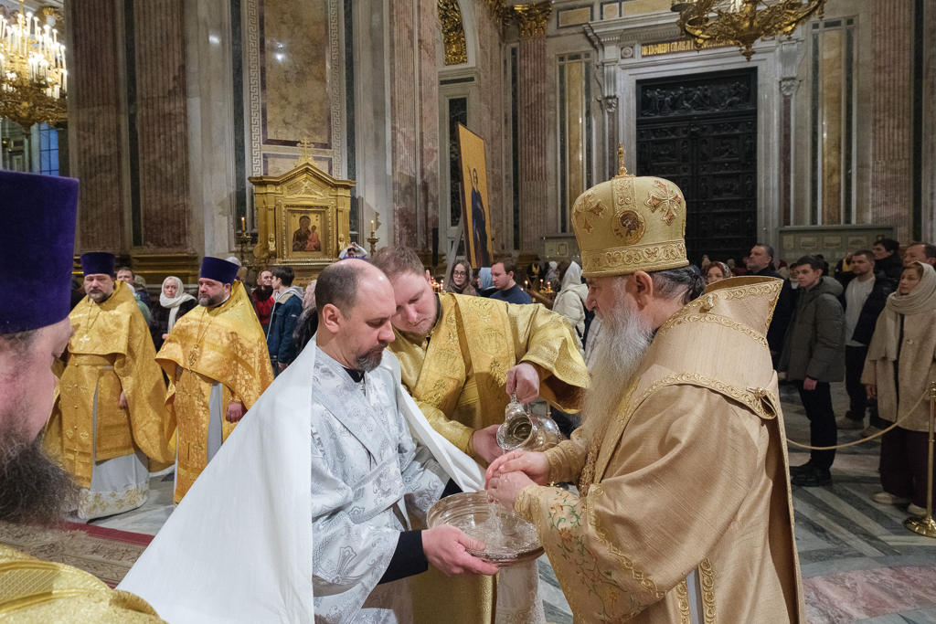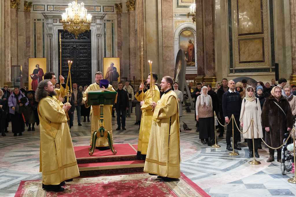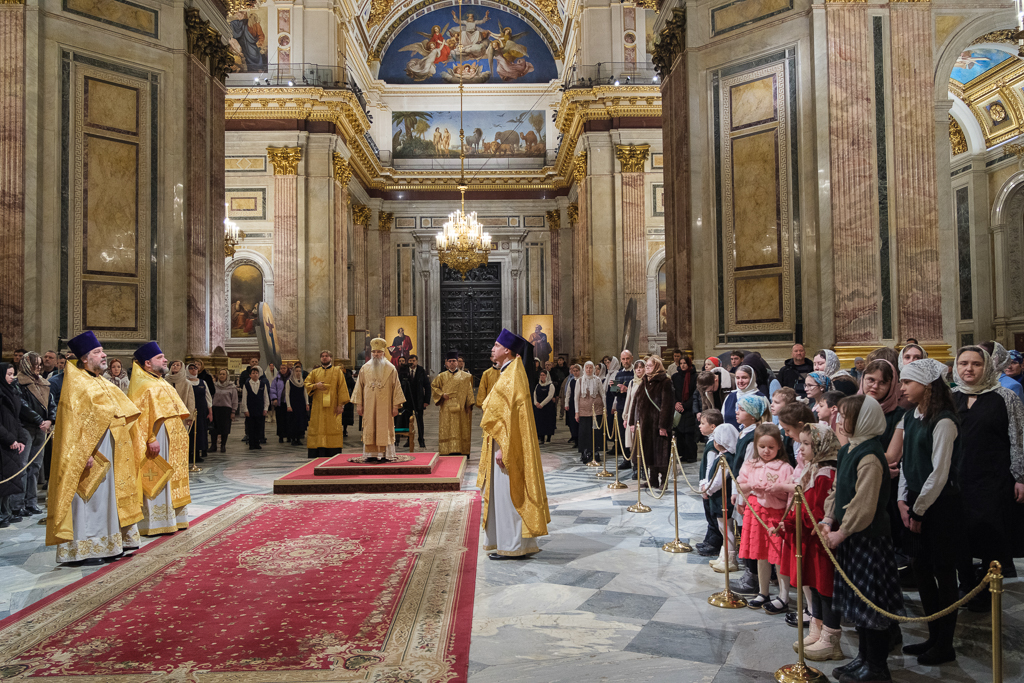 В Неделю сыропустную, воспоминание Адамова изгнания, Прощеное воскресенье, 22 февраля, митрополит Санкт-Петербургский и Ладожский Варсонофий совершил Божественную литургию в Исаакиевском соборе.