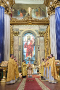 Его Высокопреосвященству сослужили секретарь епархиального управления протоиерей Сергий Куксевич, благочинный Адмиралтейского округа протоиерей Алексий Скляров, ключарь протоиерей Роман Ковальский с клиром и другие священнослужители.