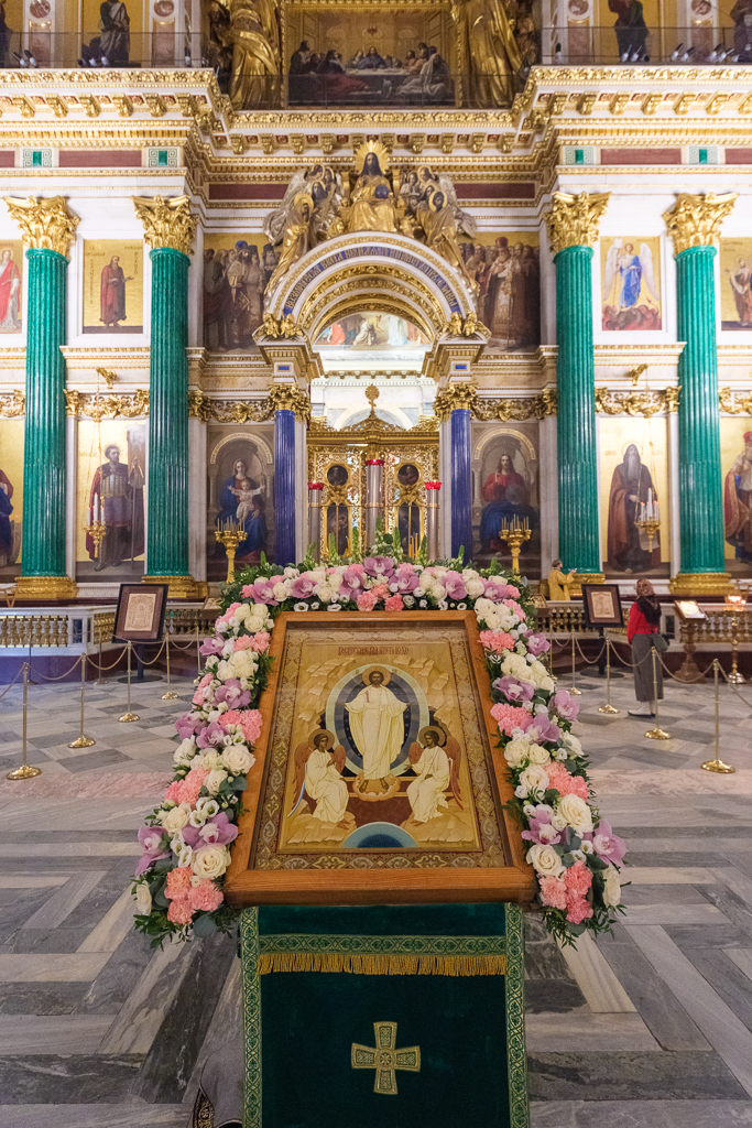 Собор преподобного Исаакия Далматского был задуман императором Петром I, который родился в день памяти этого святого. Современному храму предшествовали три храма, оказавшиеся недолговечными. Четвертый был заложен в 1819 году по проекту Огюста Монферрана. Строился 40 лет. Был освящен 12 июня 1858 года как главный собор Российской империи. Здесь совершались благодарственные молебны в памятные дни петровских побед, торжественно отмечали день основания Санкт-Петербурга. В советское время храм закрыли, в нем разместился антирелигиозный музей. В 1937-м он получил статус памятника, а музею определили историко-художественный профиль. Первое богослужение прошло в 1990 году. С осени 2015-го по договоренности с музеем в соборе ежедневно совершаются утренние и вечерние богослужения.