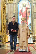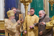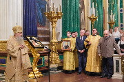 Храму была подарена икона преподобного Александра Свирского. Ключарю собора протоиерею Роману Ковальскому вручен наперсный крест с украшениями.