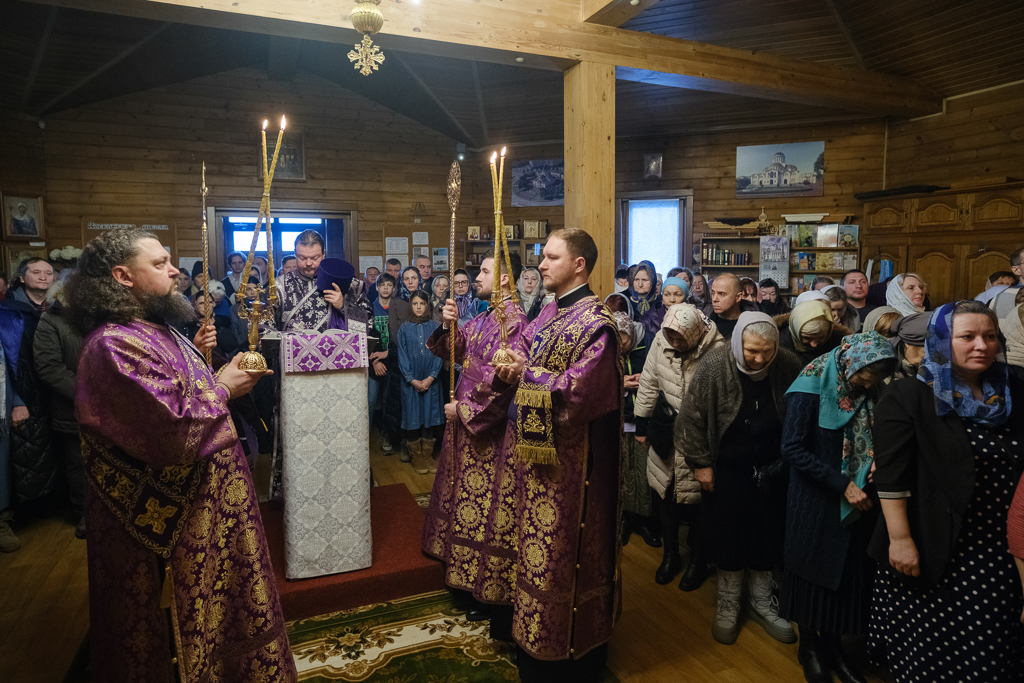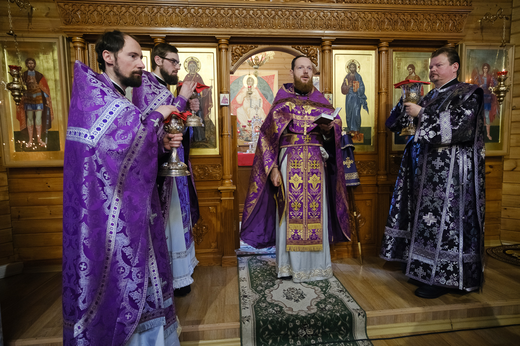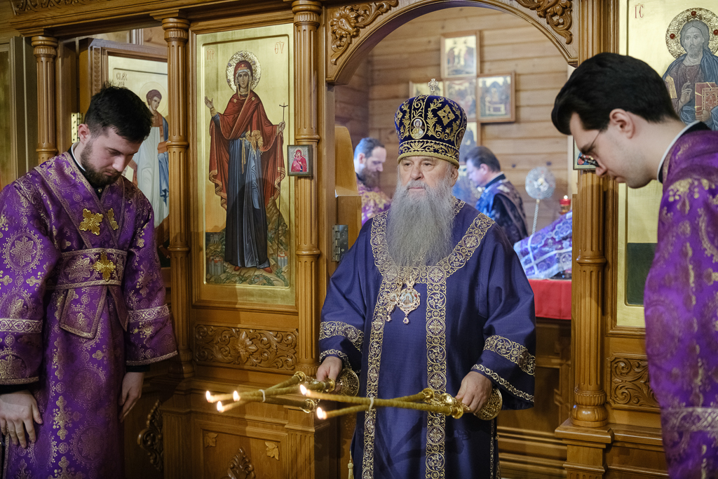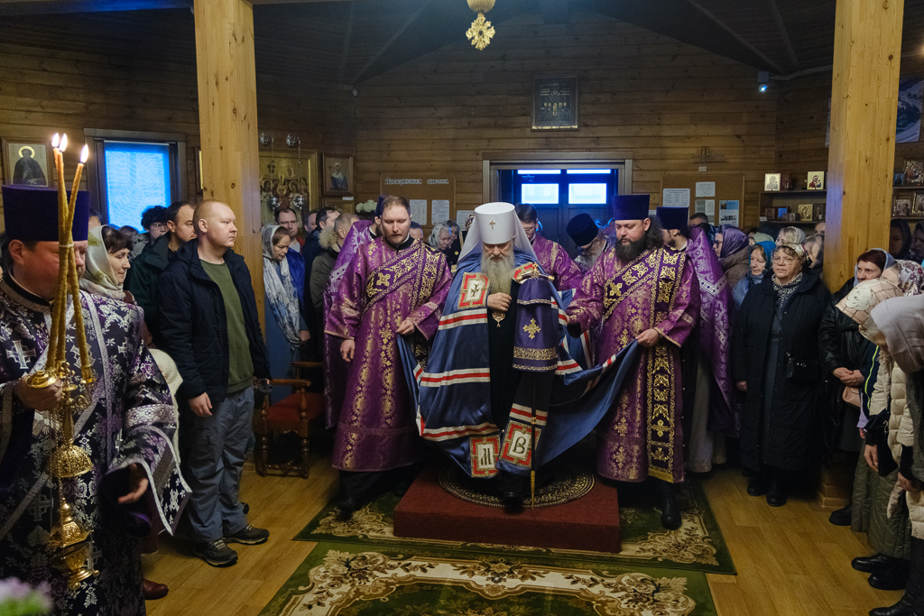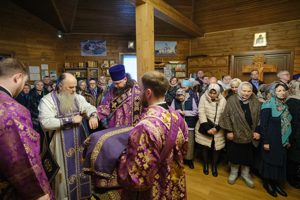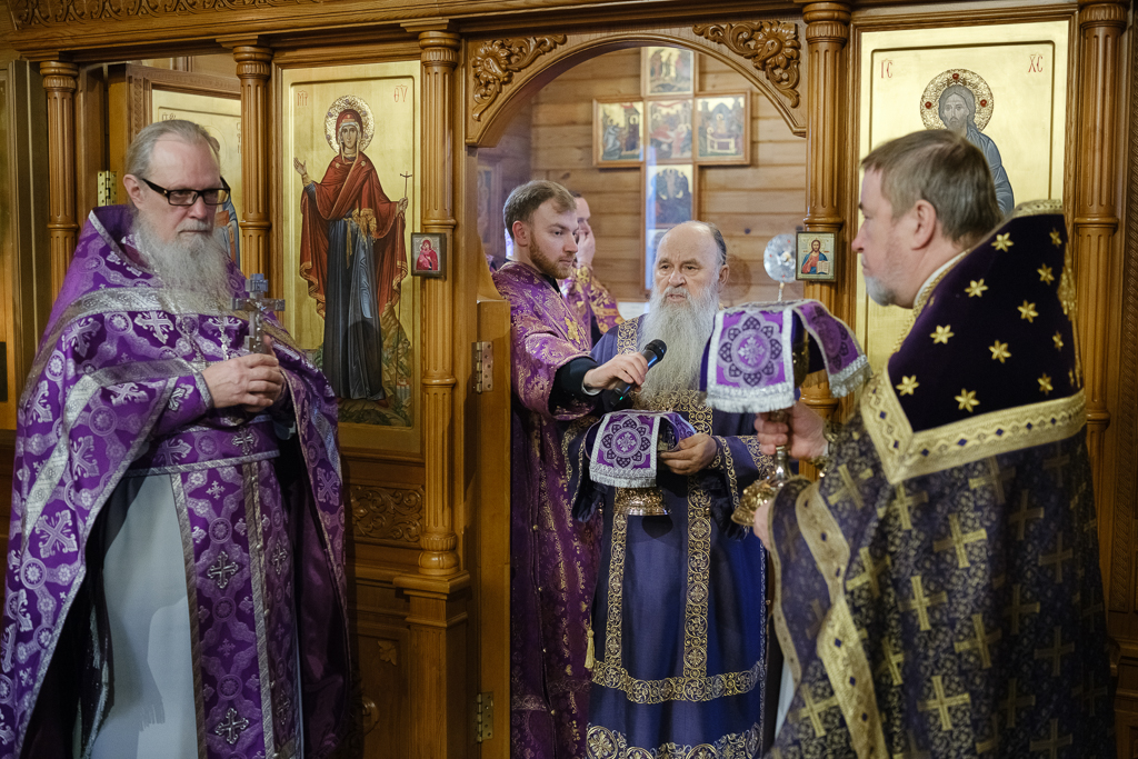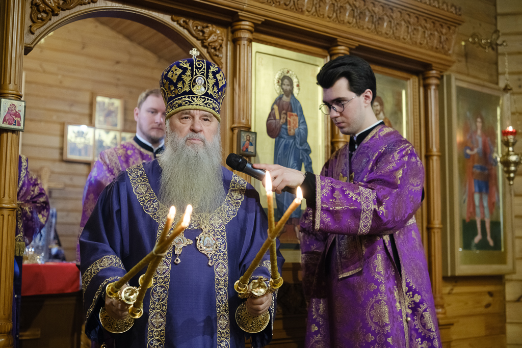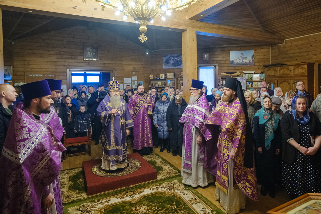 В субботу 1-й седмицы Великого поста, 28 февраля, митрополит Санкт-Петербургский и Ладожский Варсонофий совершил Божественную литургию в храме aрхистратига Михаила в Славянке, приписанном к строящемуся храму иконы Божией Матери "Скоропослушница".