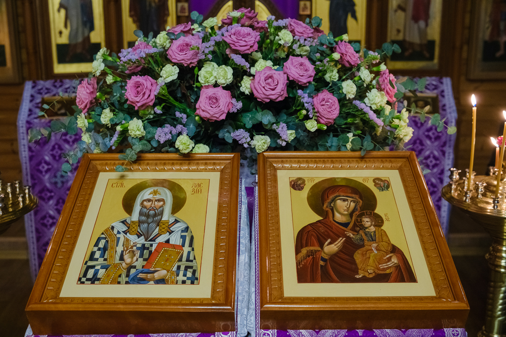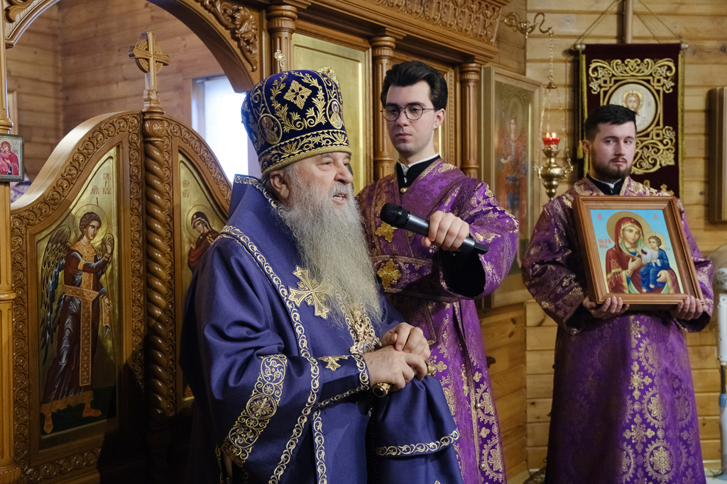 Настоятель поблагодарил митрополита за совместную молитву и подарил ему образ святителя Варсонофия, епископа Тверского, и букет цветов.
