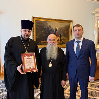 Виктор Мельник отметил труды духовенства в просветительской деятельности - в частности, была вручена благодарность заместителю председателя епархиального издательского совета иерею Илии Петрову.