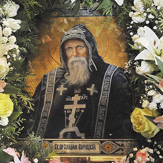 Было совершено славление перед иконой преподобного Серафима Вырицкого.