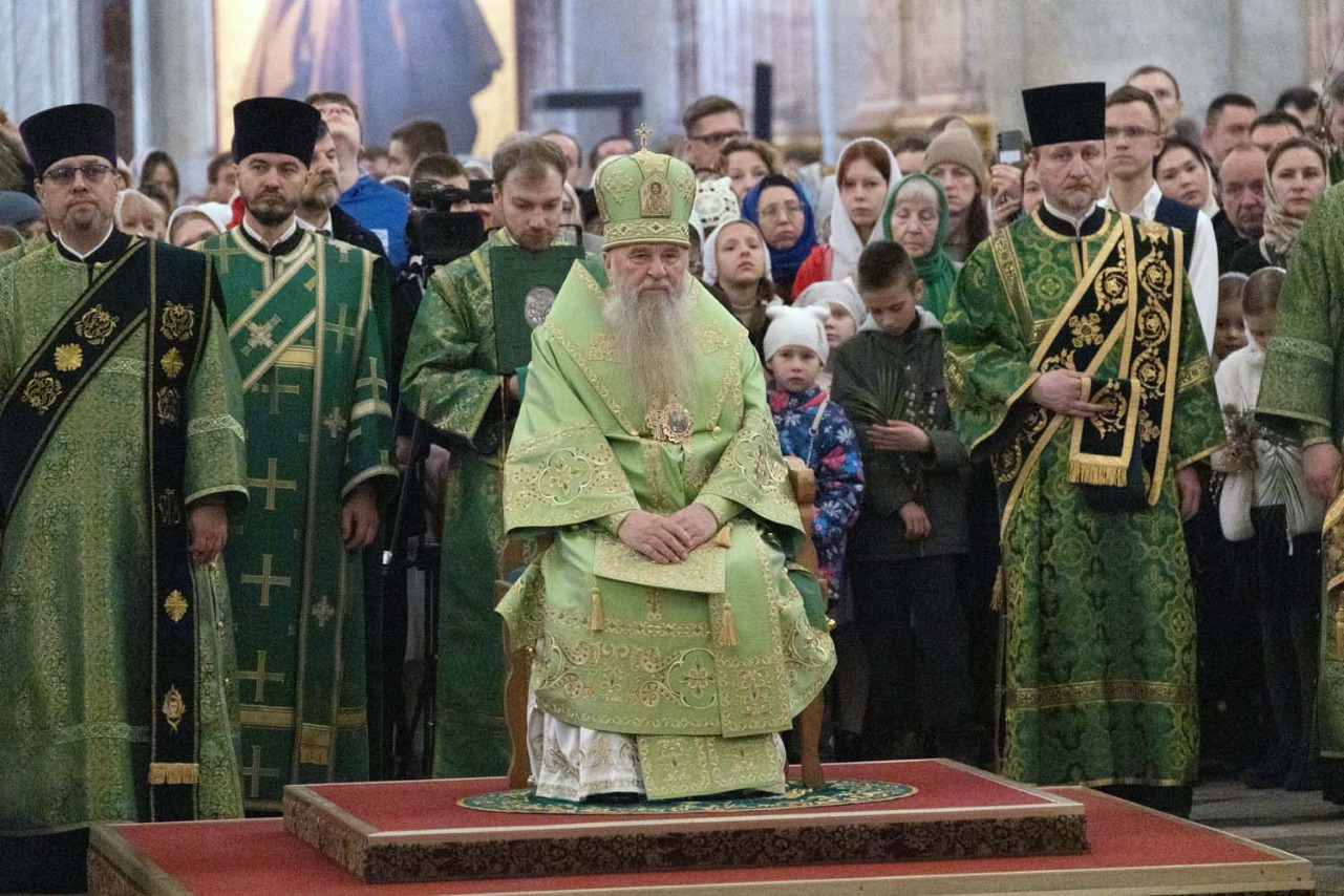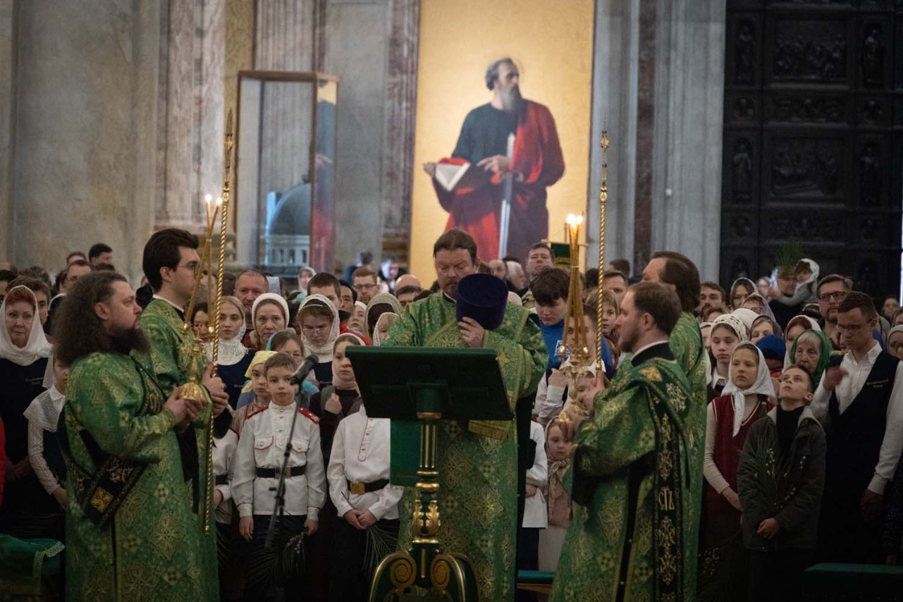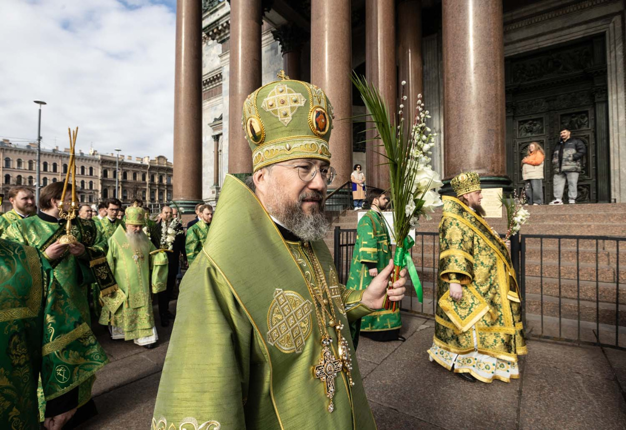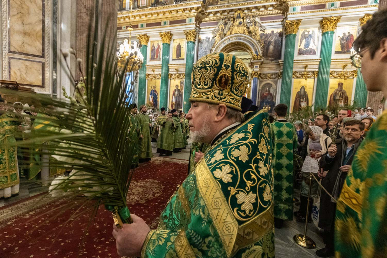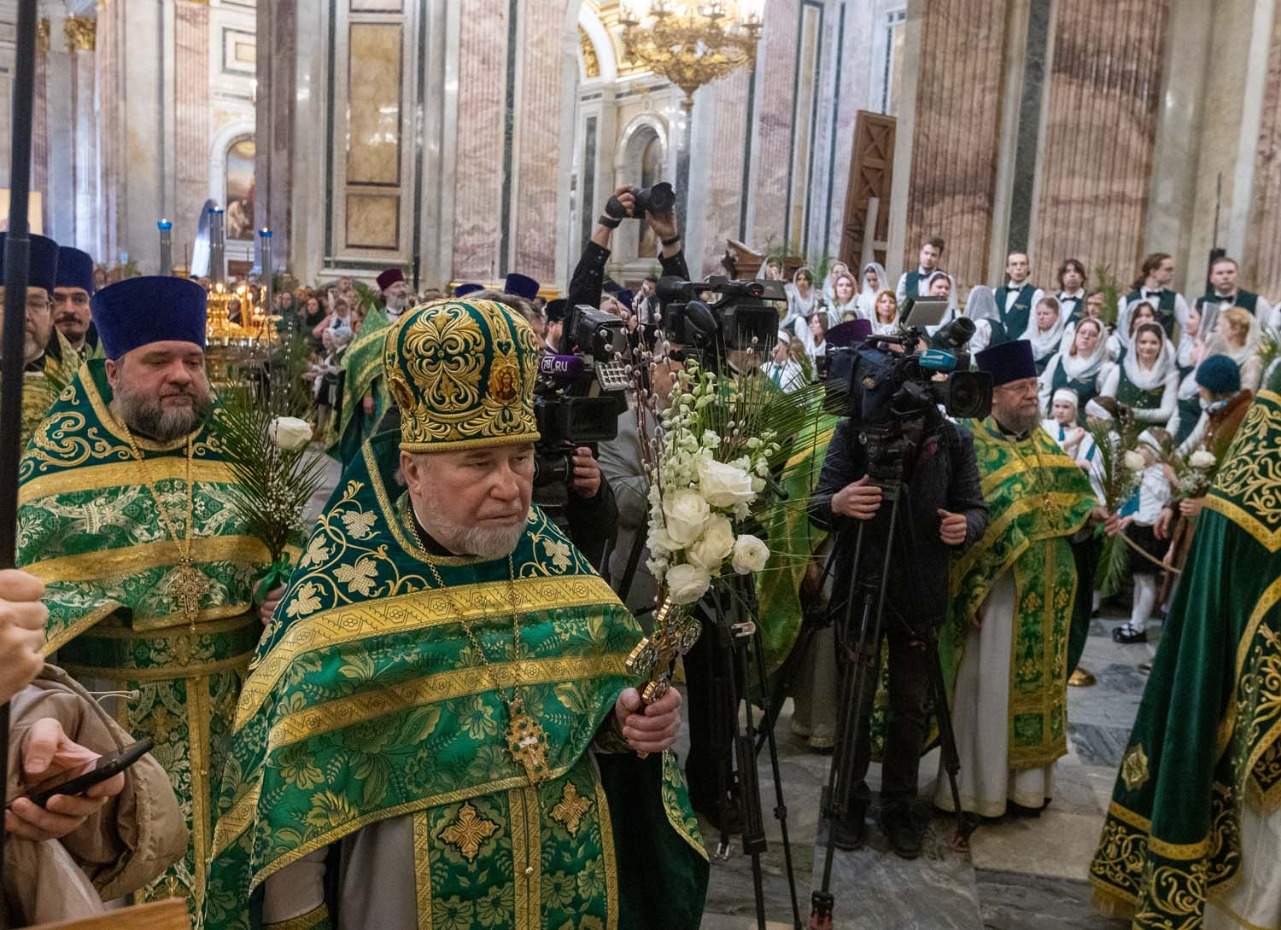 В праздник Входа Господня в Иерусалим (Вербное воскресенье), 5 апреля, митрополит Санкт-Петербургский и Ладожский Варсонофий совершил Божественную литургию в Исаакиевском соборе.