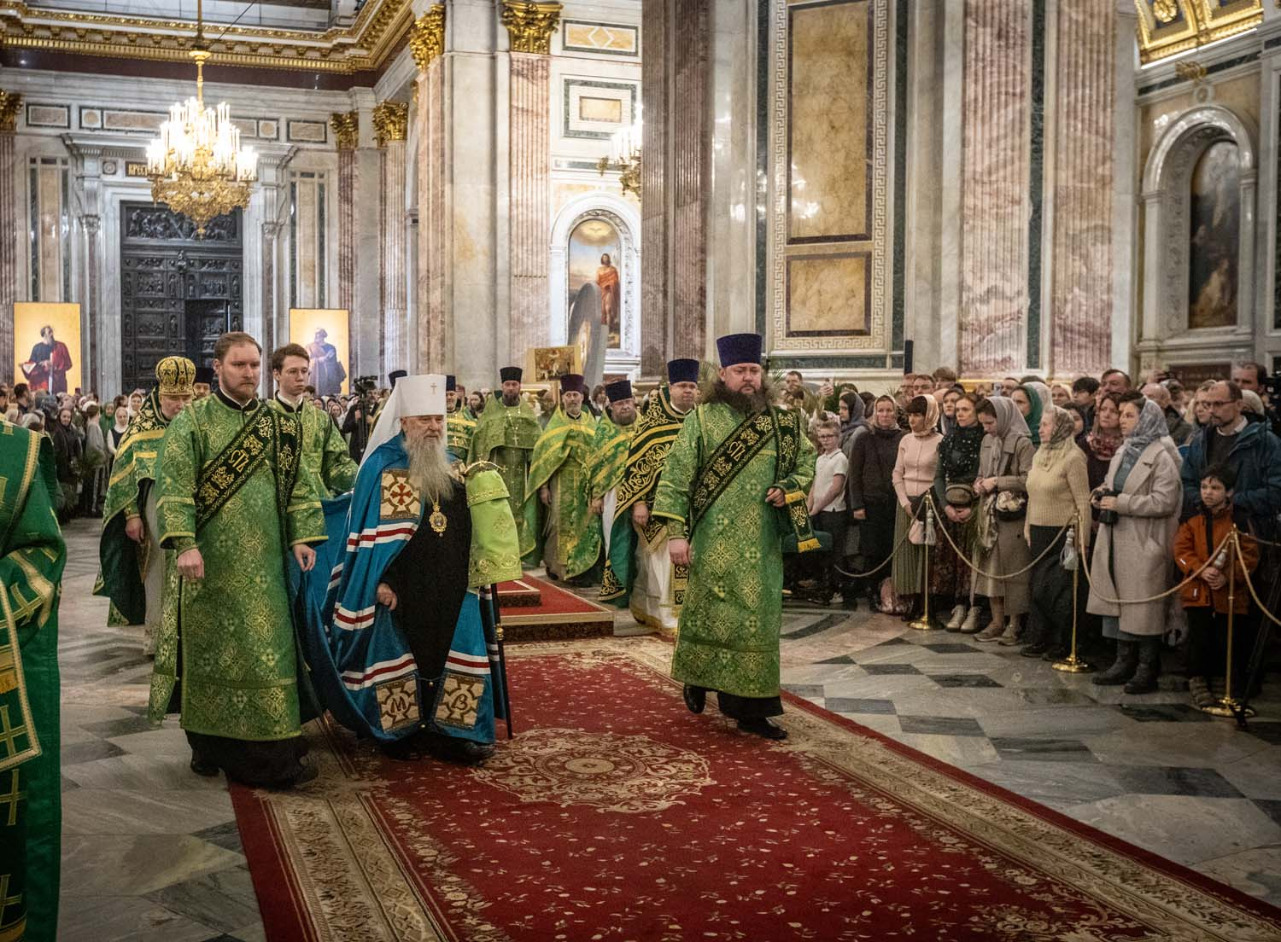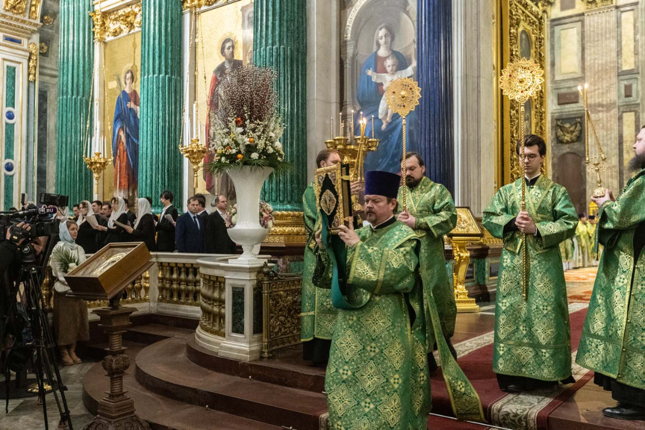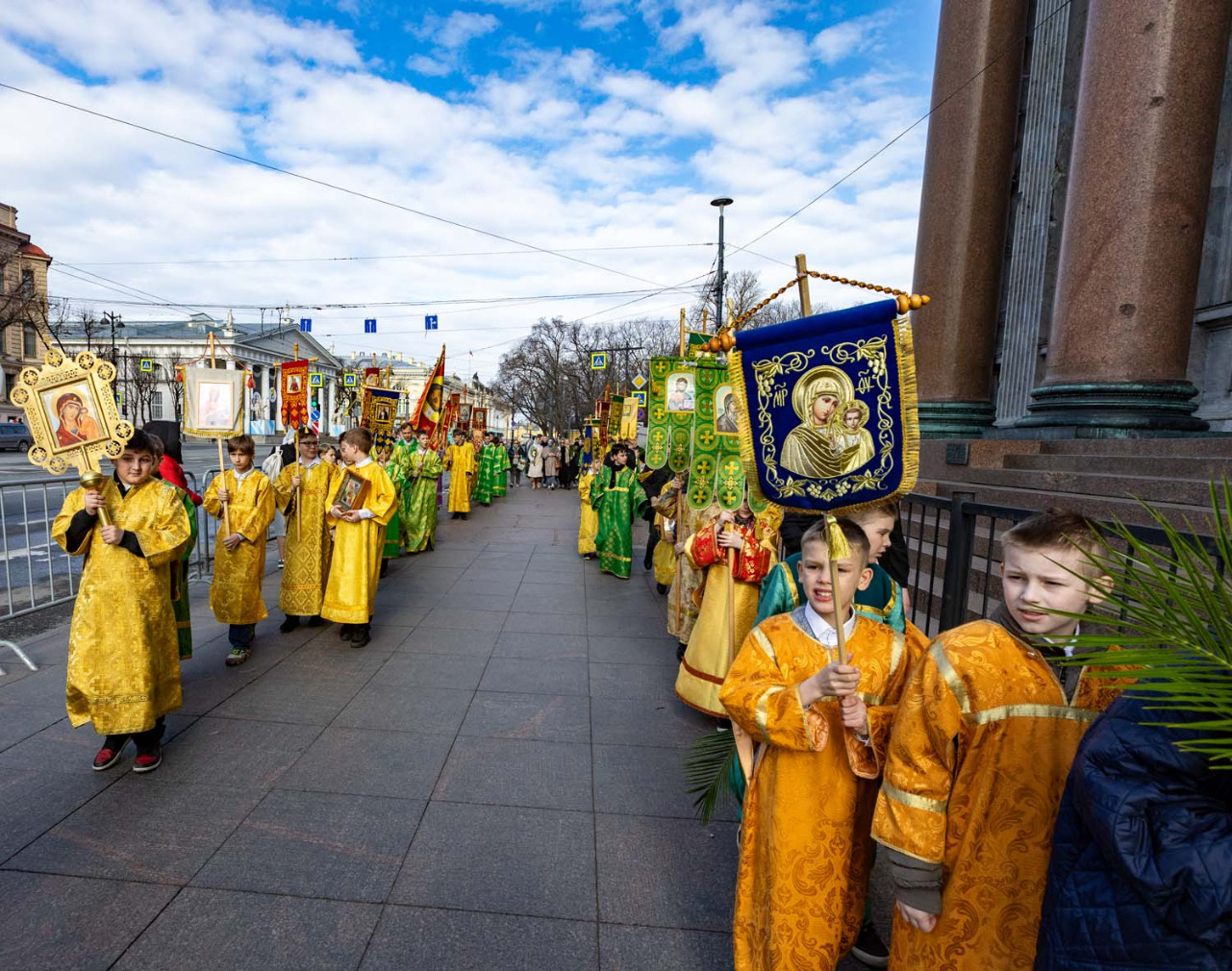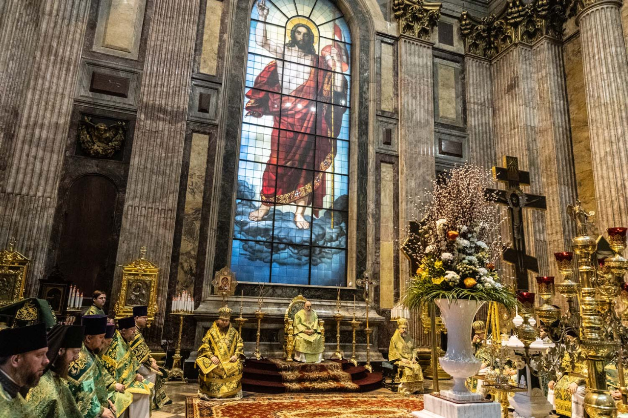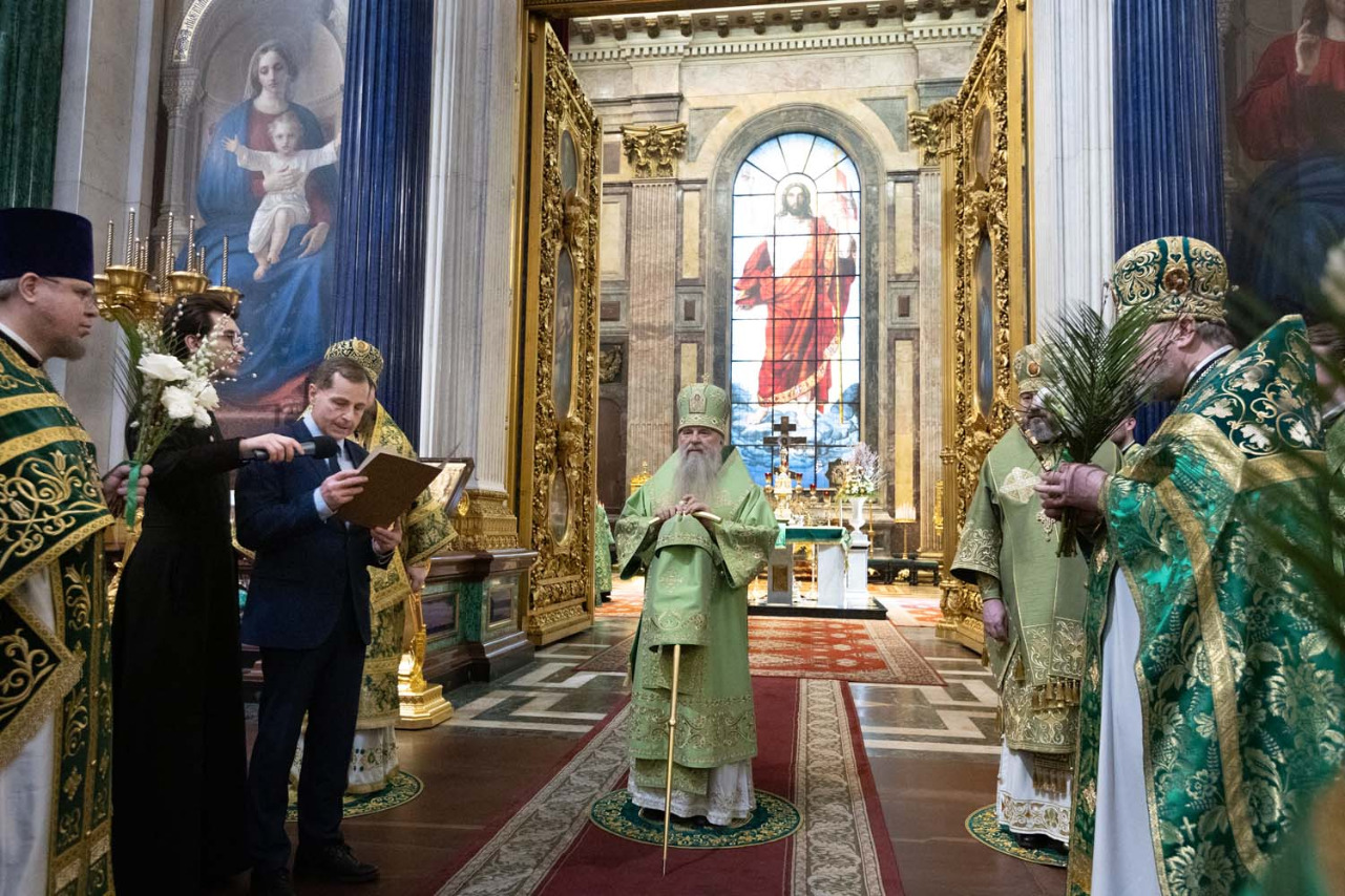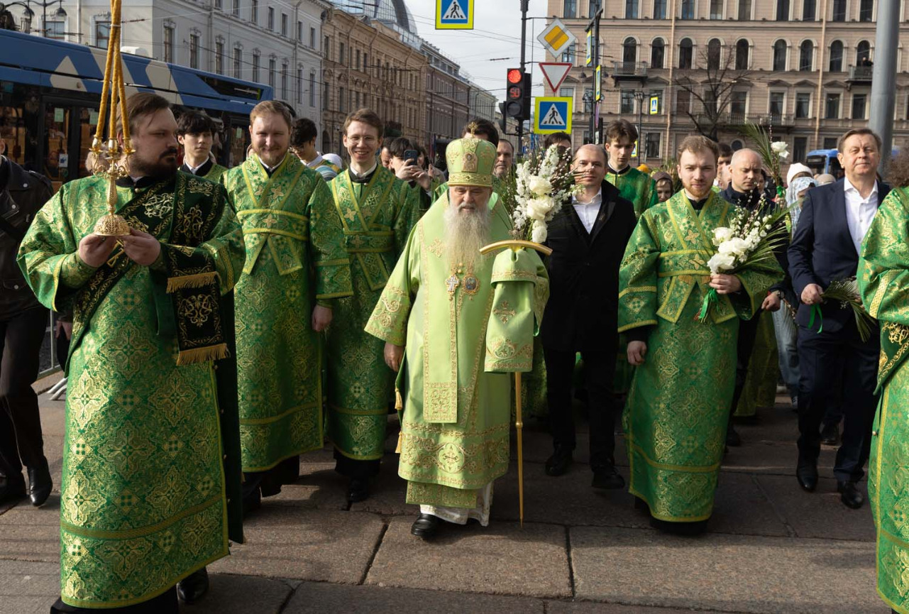 В праздник Входа Господня в Иерусалим (Вербное воскресенье), 5 апреля, митрополит Санкт-Петербургский и Ладожский Варсонофий совершил Божественную литургию в Исаакиевском соборе.