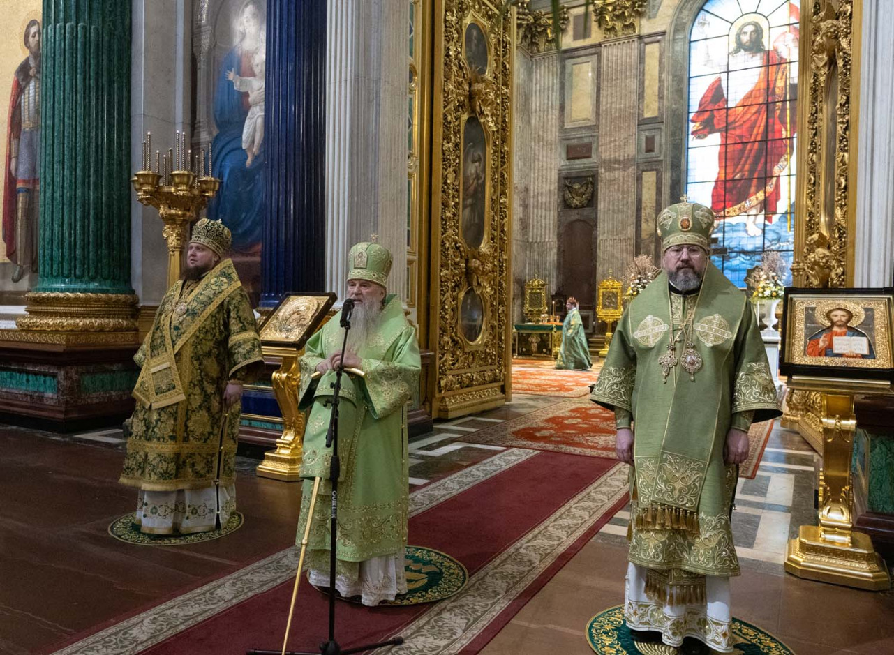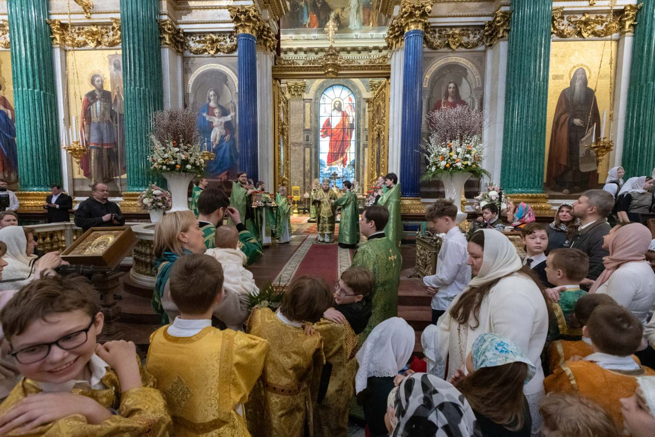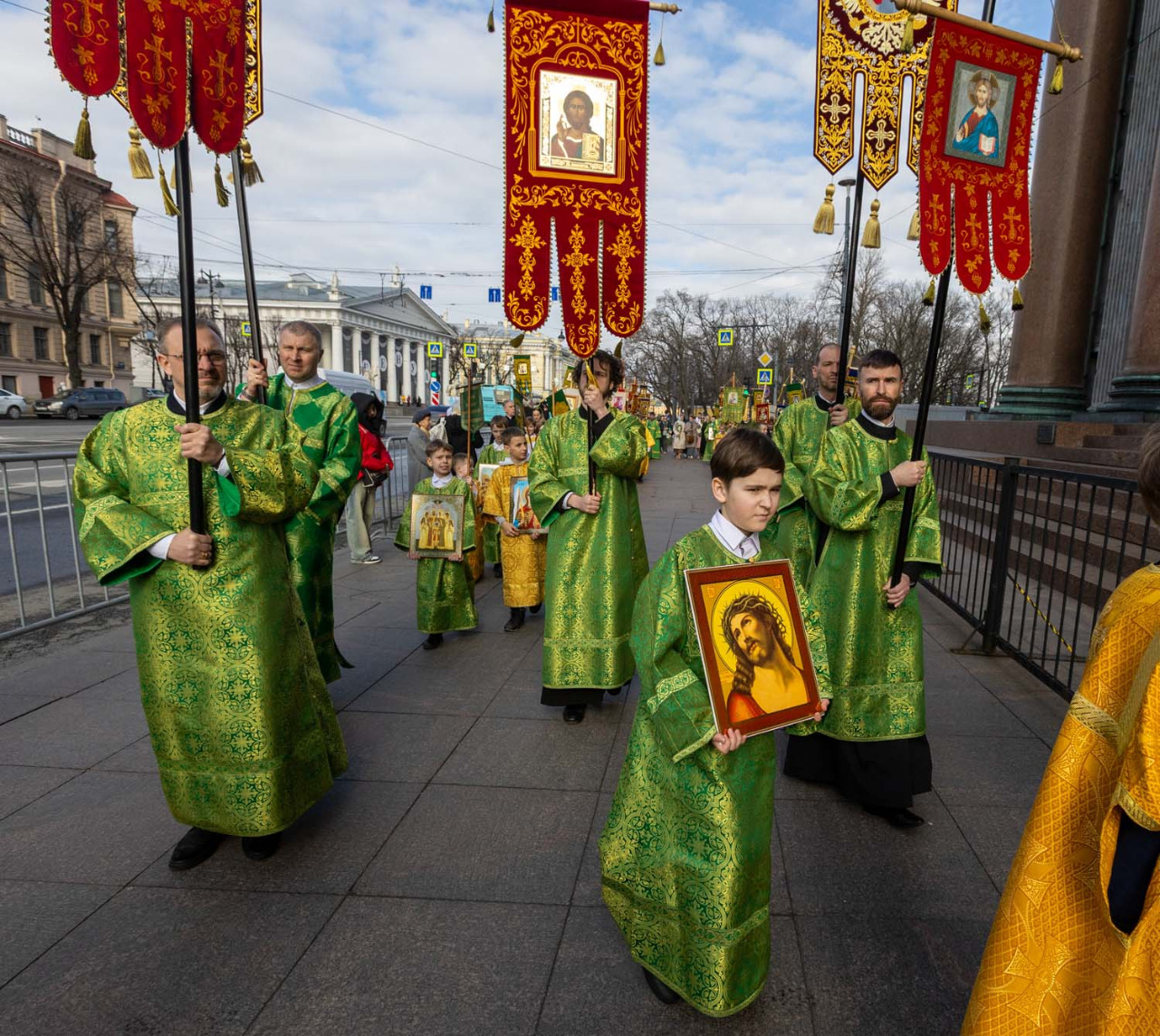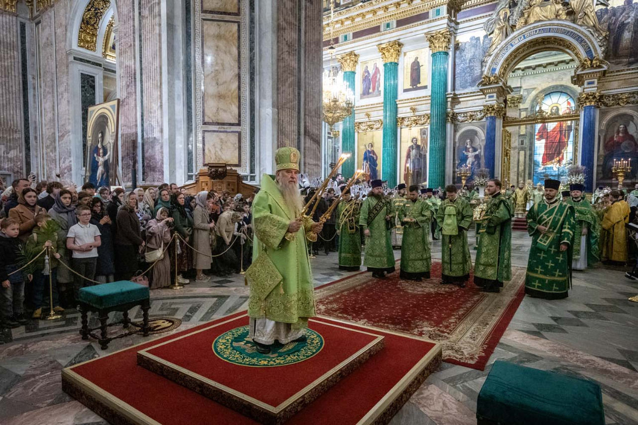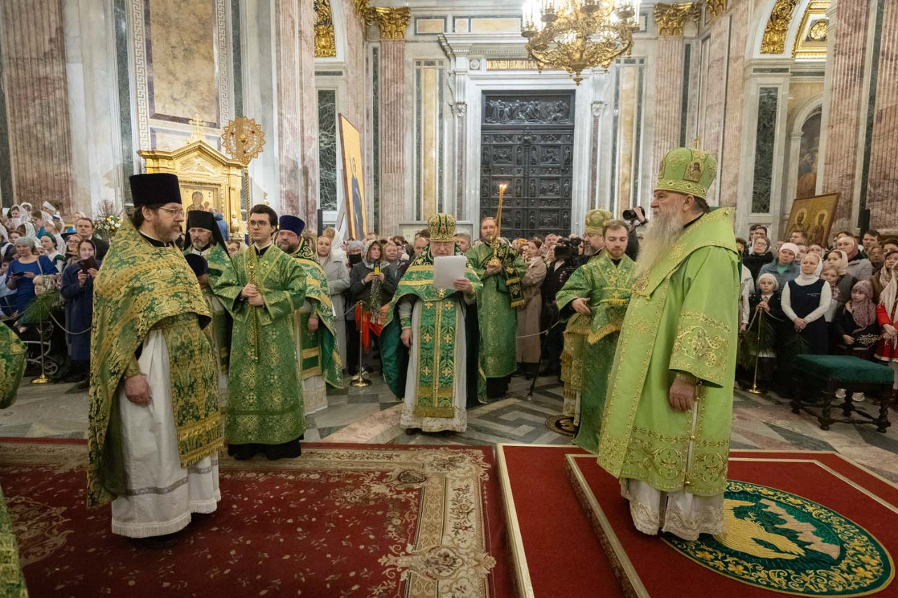 В праздник Входа Господня в Иерусалим (Вербное воскресенье), 5 апреля, митрополит Санкт-Петербургский и Ладожский Варсонофий совершил Божественную литургию в Исаакиевском соборе.