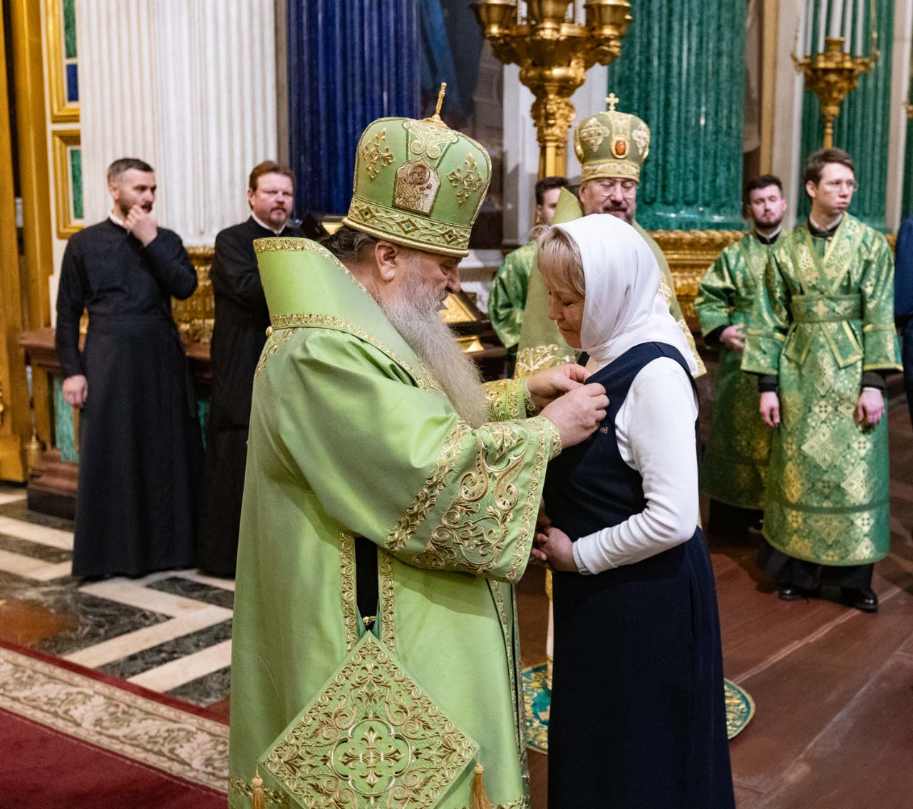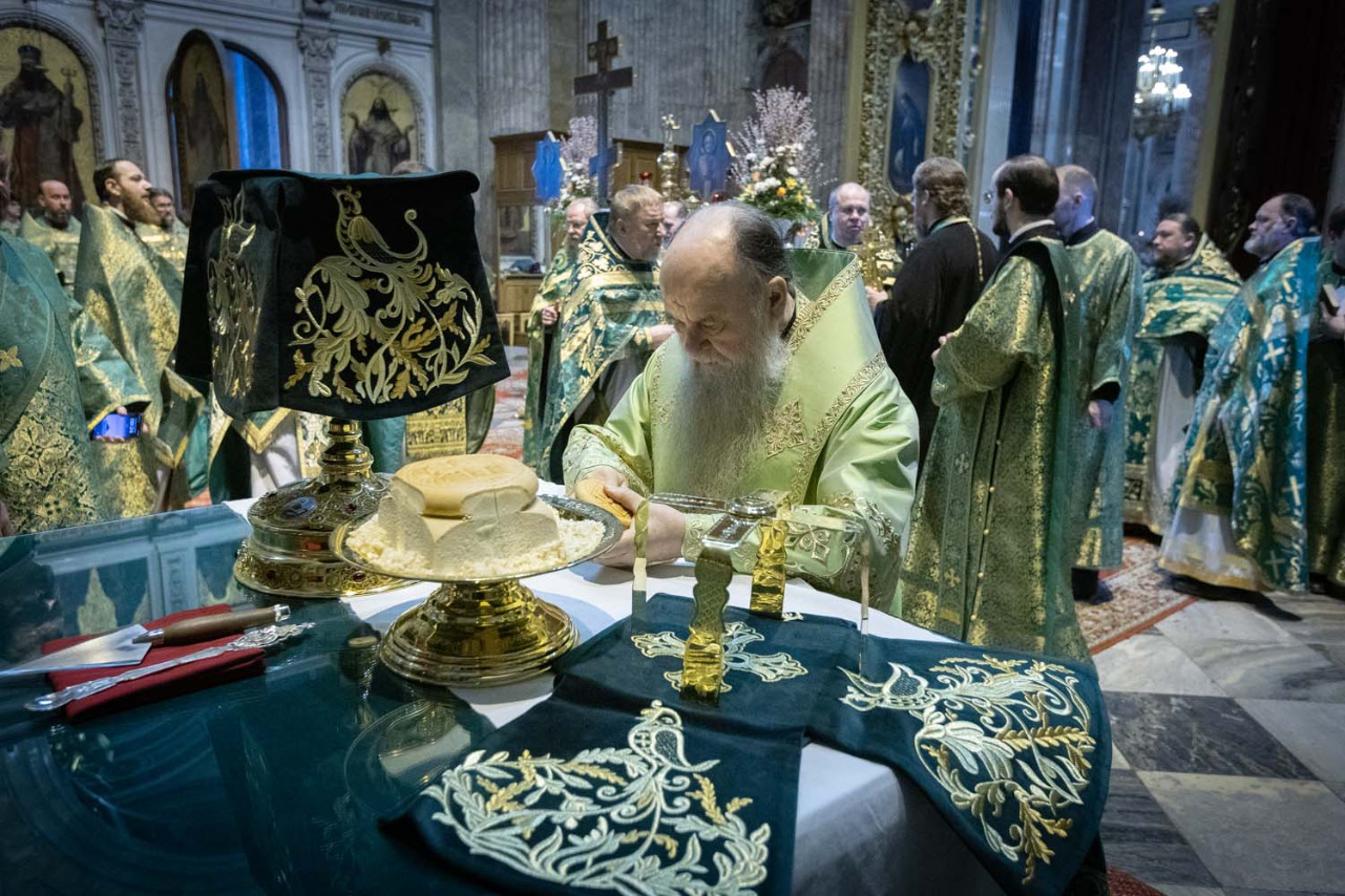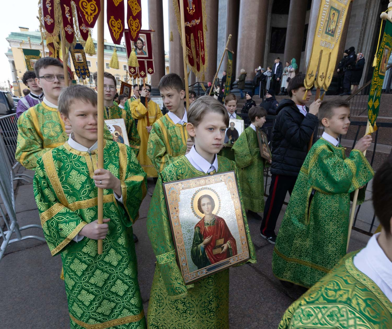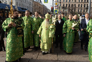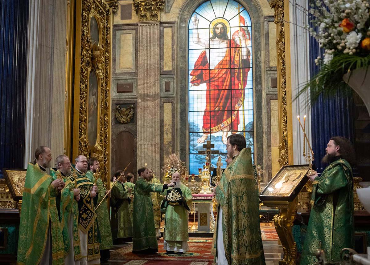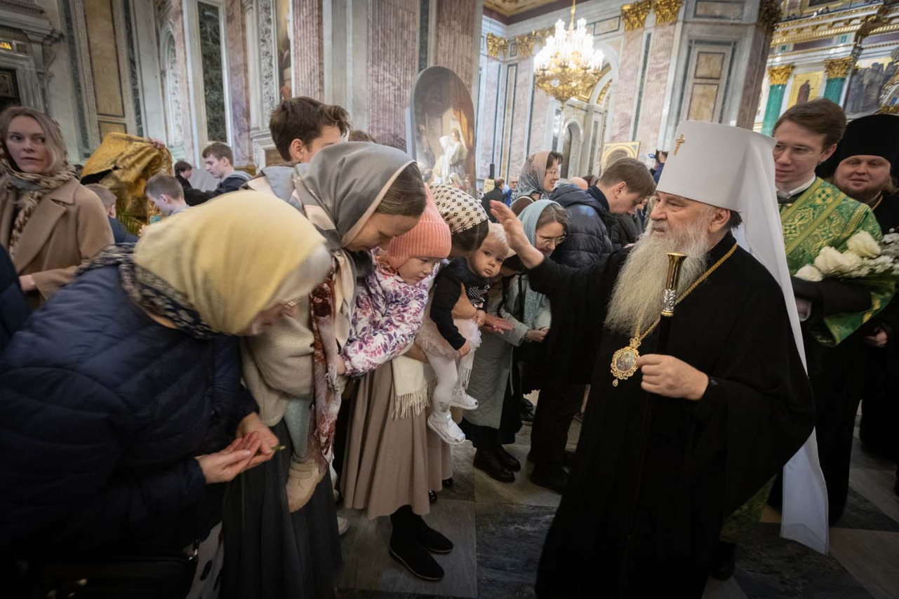 В праздник Входа Господня в Иерусалим (Вербное воскресенье), 5 апреля, митрополит Санкт-Петербургский и Ладожский Варсонофий совершил Божественную литургию в Исаакиевском соборе.