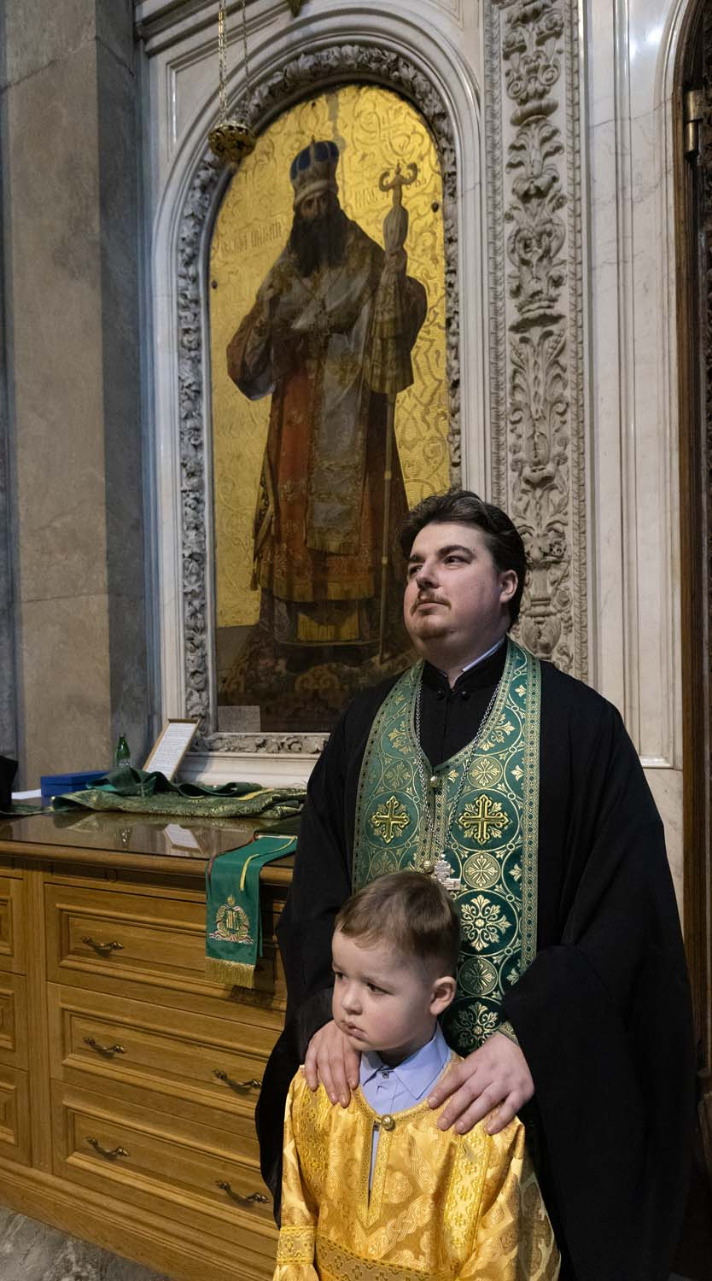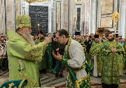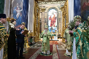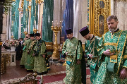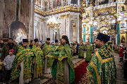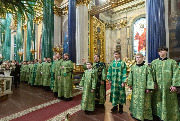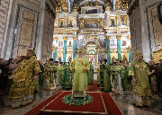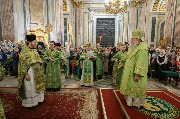 Его Высокопреосвященству сослужили епископы Кронштадтский Вениамин и Петергофский Силуан, секретарь епархиального управления протоиерей Сергий Куксевич, благочинный Адмиралтейского округа протоиерей Алексий Скляров, ключарь протоиерей Роман Ковальский с клиром и другие священнослужители.