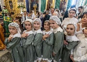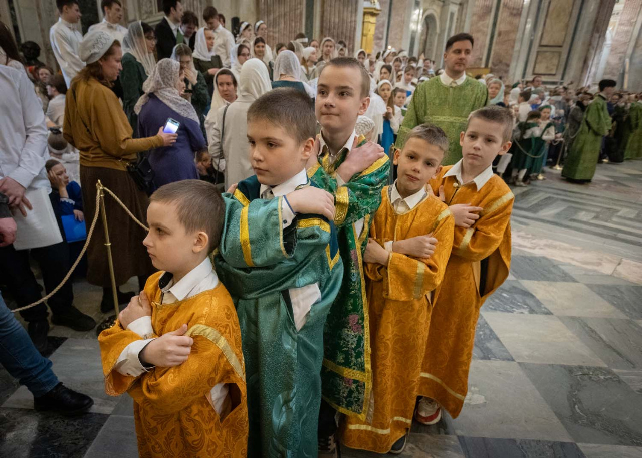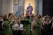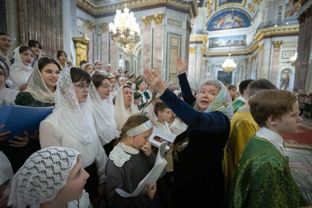 Пели хор собора под управлением Ксении Симончук, молодежный и детский хоры под управлением Ларисы Христич, сводный детский хор митрополии под управлением Валентины Королевой, хор "Перезвоны" Санкт-Петербургской школы искусств имени Михаила Глинки под управлением Ларисы Яруцкой.