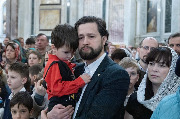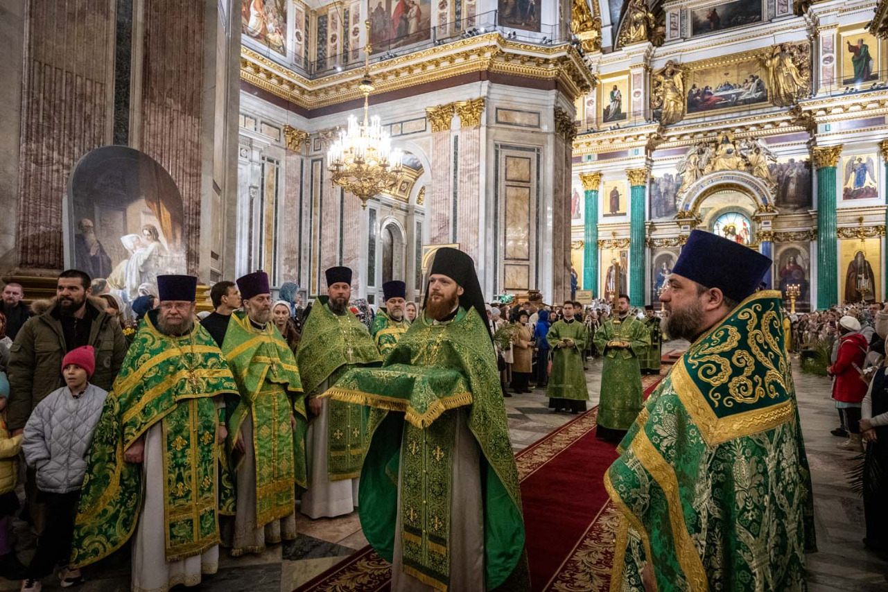 Среди молящихся был директор ГМ "Исаакиевский собор" Юрий Мудров, депутат Госдумы Михаил Романов, начальник городского отдела по взаимодействию с религиозными объединениями Владимир Иванов.