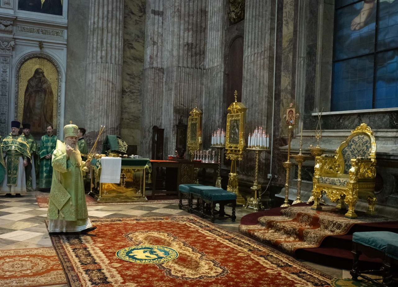 Собор преподобного Исаакия Далматского был задуман императором Петром I, который родился в день памяти этого святого. Современному храму предшествовали три храма, оказавшиеся недолговечными. Четвертый был заложен в 1819 году по проекту Огюста Монферрана. Строился 40 лет. Был освящен 12 июня 1858 года как главный собор Российской империи. Здесь совершались благодарственные молебны в памятные дни петровских побед, торжественно отмечали день основания Санкт-Петербурга. В советское время храм закрыли, в нем разместился антирелигиозный музей. В 1937-м он получил статус памятника, а музею определили историко-художественный профиль. Первое богослужение прошло в 1990 году. С осени 2015-го по договоренности с музеем в соборе ежедневно совершаются утренние и вечерние богослужения.