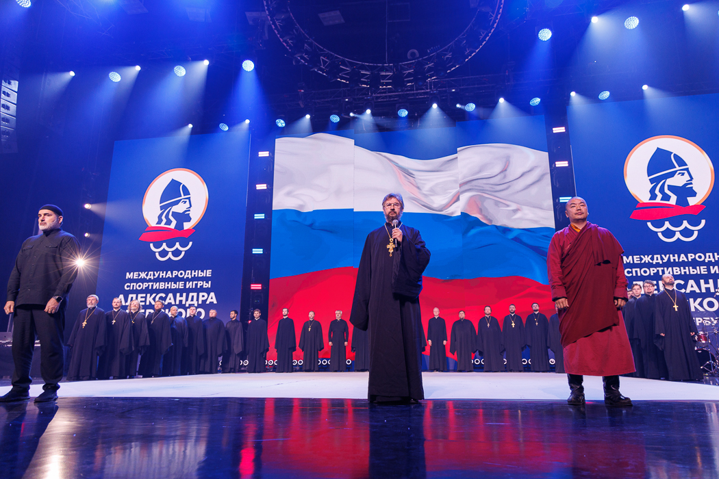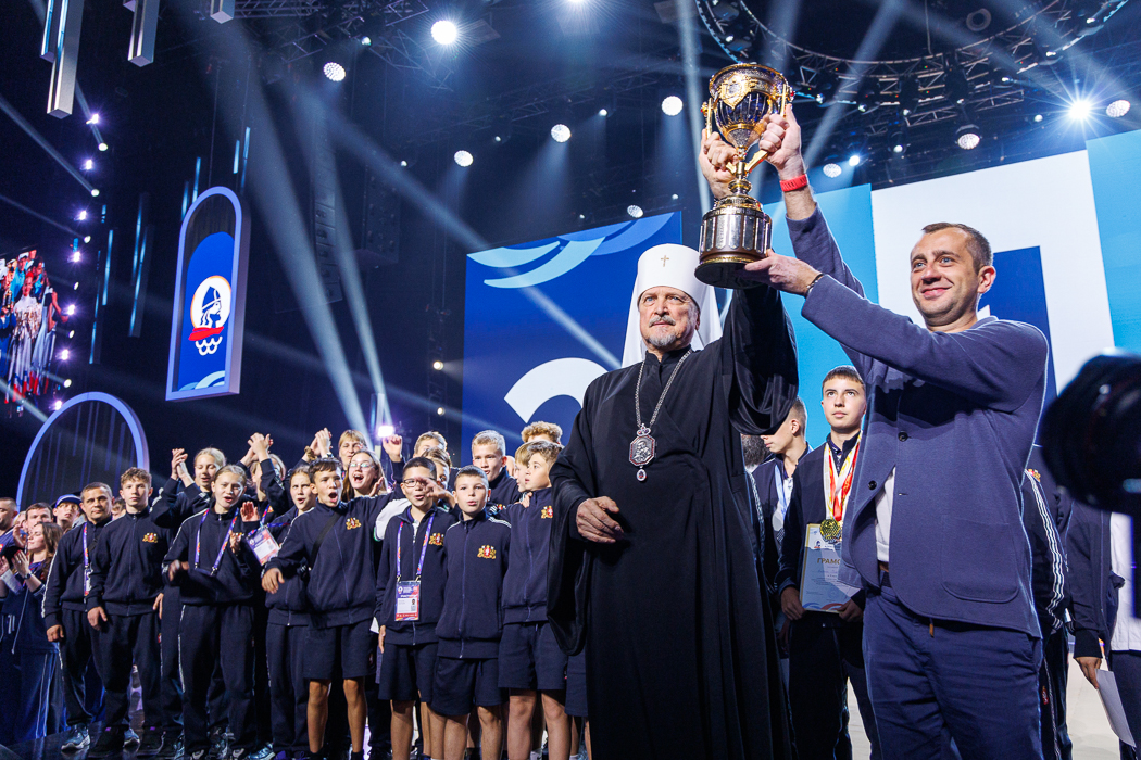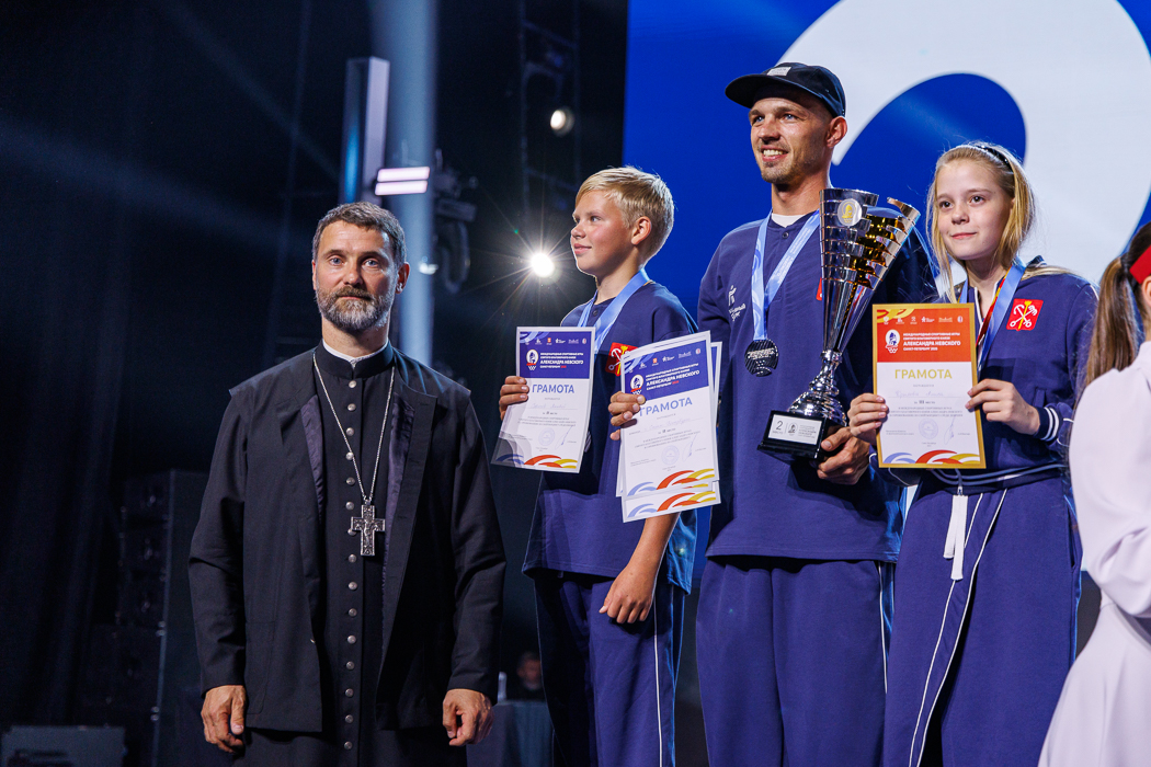 Закрытие Игр святого Александра Невского состоялось 14 сентября в СК "Юбилейный". Перед вручением наград хор духовенства митрополии под управлением Юрия Герасимова спел тропарь благоверному князю.