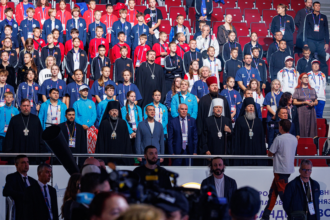 Хор духовенства митрополии исполнил гимн игр. Был показан видеоролик, запечатлевший памятные моменты открытия соревнований, богослужений и крестного хода 12 сентября.