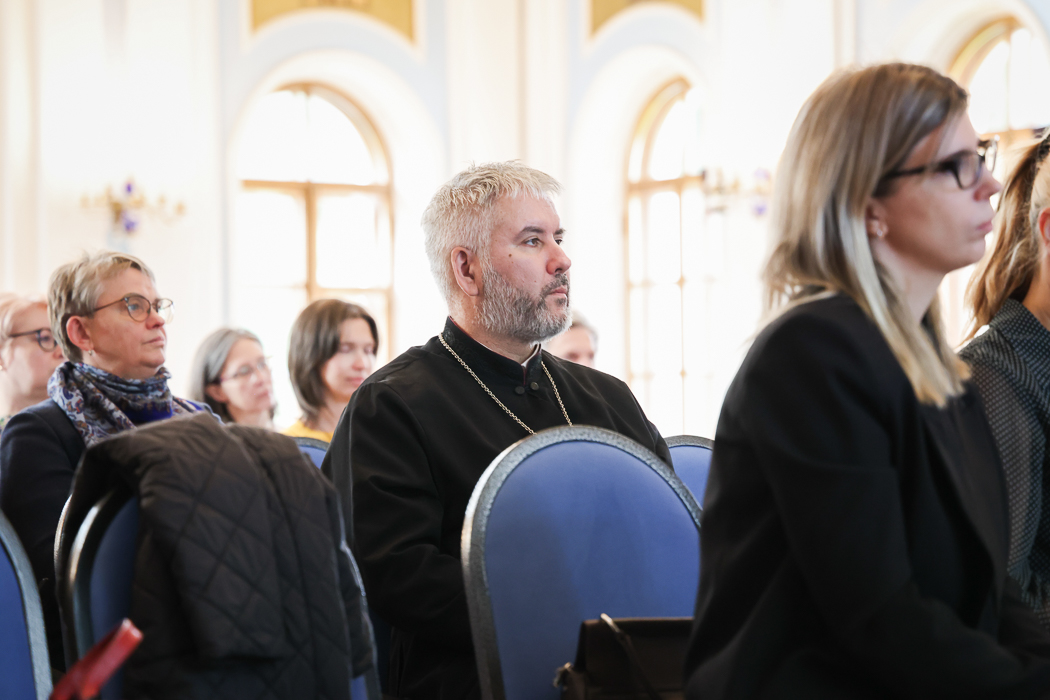 Приветствие председателя ОЦБСС протоиерея Николая Брындина передал руководитель координационного центра по работе с детьми, оставшимся без попечения родителей, иерей Феодосий Амбарцумов. Он отметил, что это событие знаменует начало сотрудничества с Фондом пенсионного и социального страхования.