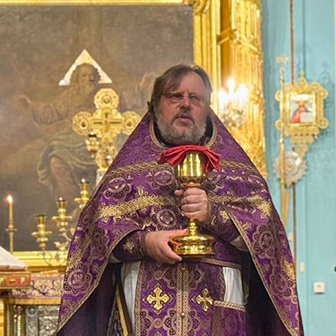 Богослужение совершил председатель епархиального отдела по взаимоотношениям Церкви и общества протоиерей Александр Пелин в сослужении заместителя председателя ОВЦО иерея Александра Башкина, благочинного Кудровского округа Выборгской епархии протоиерея Владимира Данковича и настоятеля храма пророка Илии в поселке Ефимовский Тихвинской епархии иерея Михаила Ломакина.