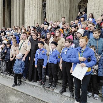 На площади перед Казанским собором 5 октября прошла Георгиевская игра для скаутов. В ней приняли участие 35 команд от приходов епархии. Ее предварил молебен, который отслужил председатель епархиального отдела по делам молодежи протоиерей Константин Головатский.