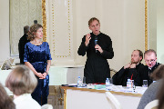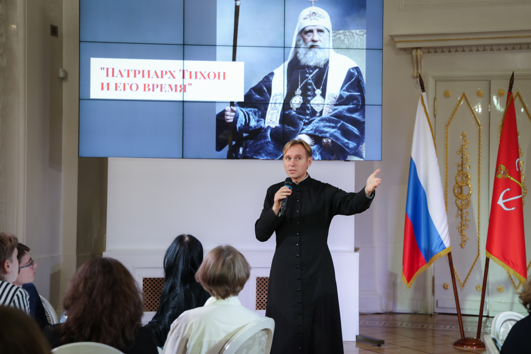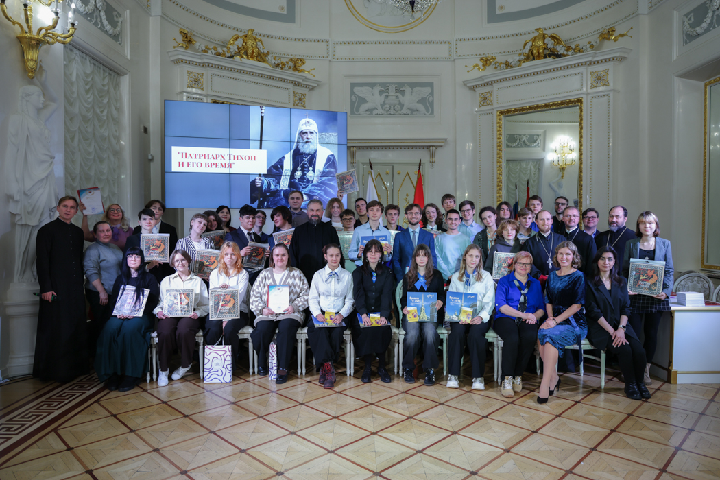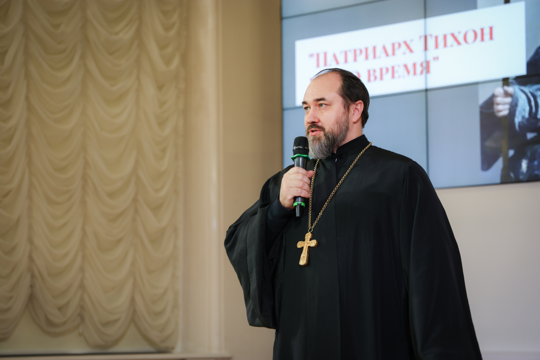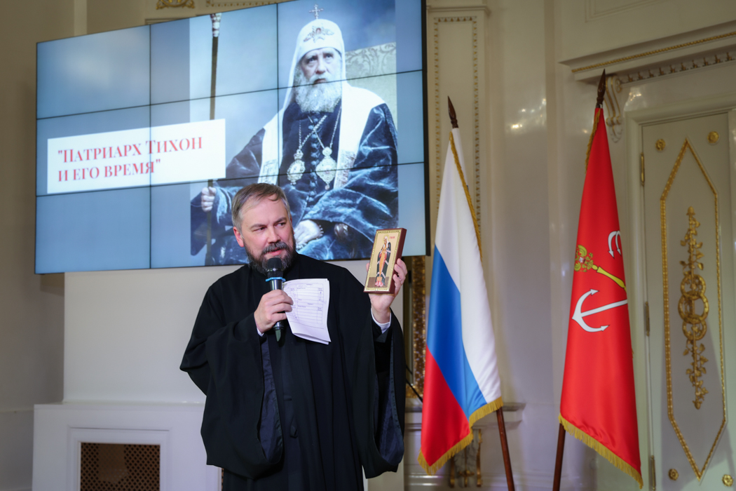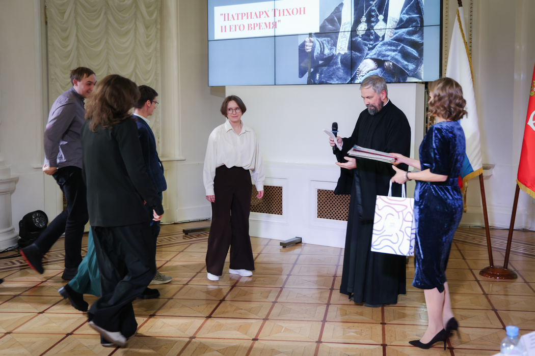 Директору "Академии талантов" Егору Кирееву было вручено благодарственное письмо."Глядя на портрет Патриарха Тихона, уже можно понять величину его личности, - отметил в приветствии председатель ОРОиК иерей Илия Макаров. - Спустя сто лет после его кончины мы не просто вспоминаем о нем, а изучаем его наследие, проникновенно относимся к его деятельности. Наша духовная история обретает новые смыслы. Она нам небезразлична, она способна нас вдохновить на будущее. Приятно видеть наших участников, школьников, которые готовы созидать новую Россию".