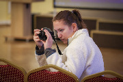 О нюансах портретной съемки в формате репортажа рассказала Марина Куракина. Она отметила, что жанр социального портрета довольно широко представлен - гораздо шире, чем может показаться на первый взгляд. Под "социальным портретом" обычно понимается съемка бездомных, малоимущих, больных, но это понятие шире: "социальный" - значит общественный, относящийся к жизни людей в самом широком смысле. Поскольку Марина - сотрудник церковного СМИ, она в первую очередь освещает жизнь Церкви, ее служителей. Она призналась, что пока не понимает, как показать человека в сложных жизненных обстоятельствах так, чтобы в нем проявился свет Христов, образ Божий, который есть в каждом человеке.