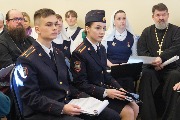 С сообщениями выступили курсанты Санкт-Петербургского университета МВД Степан Семенов - "Виды и способы реабилитации ветеранов и инвалидов Первой Мировой войны", Валерия Попова - "Участие Русской Православной Церкви в реабилитации ветеранов и инвалидов Первой мировой войны, помощи их родственникам и сохранению памяти о героях войны", а также доцент кафедры теории и истории государства и права Университета МВД майор полиции Евгений Андрюхин - "Участие Русской Православной Церкви в помощи населению, вооруженным силам и добровольческим формированиям в период проведения СВО (на примере Курской области). Проблемы и перспективы".