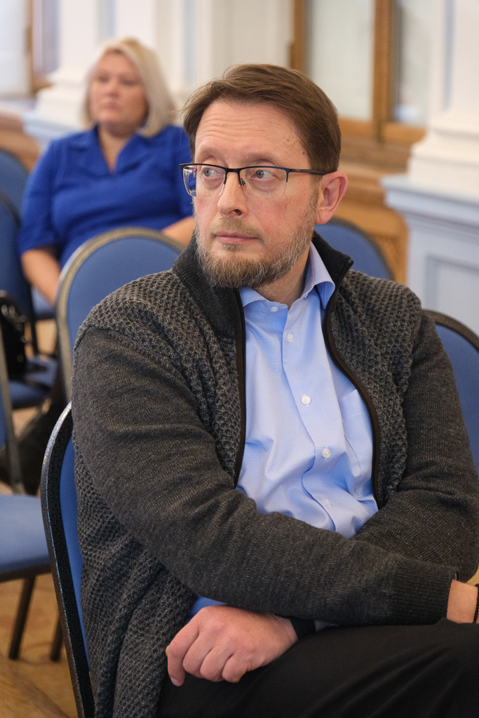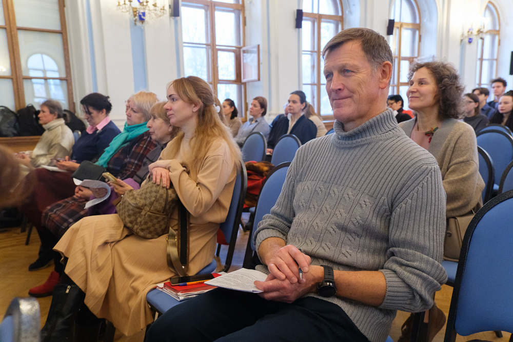 Выступил куратор архивного фонда СВО, сотрудник Центрального государственного архива Владислав Вовк. "Цель нашего фонда - зафиксировать историю. Настоящая история пишется каждым из нас. Мы собираем истории непосредственных участников боевых действий и волонтеров. Нужно сохранить не просто цифры - по ним людям будущего не реконструировать атмосферу, в которой мы живем", - сказал он, оставил свои контакты и попросил всех желающих поделиться воспоминаниями и впечатлениями.
