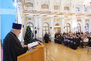 Приветствие митрополита Санкт-Петербургского и Ладожского Варсонофия зачитал председатель ОЦБСС протоиерей Николай Брындин.