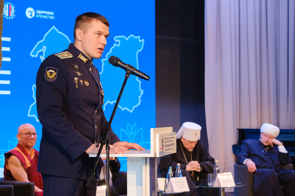 "Будучи офицером, участником специальной военной операции, других локальных конфликтов, хочу сказать, что в моей жизни всегда были, есть и будут вера, любовь к Отечеству и активная спортивная жизнь, - обратился к присутствующим ветеран СВО, участник программы "Герои команды 47" Михаил Сергиенко. - Как думаете, что помогает выжить на войне? Осознание пришло через время - мне помогли духовные и физические силы. Там нужна выносливость, физическое здоровье, которое приобретается благодаря физическим тренировкам. Основная моя работа - воспитание будущих офицеров, при их подготовке мы уделяем особое внимание физическому и духовному развитию. Как говорил великий русский полководец Александр Васильевич Суворов, "дисциплина - мать победы", а все победы нашего государства были достигнуты с верой в Бога. На войне нет неверующих. На СВО я мог погибнуть много раз. И в тяжелые минуты испытаний, когда вжимаешься в землю, вгрызаешься в нее зубами и понимаешь, что это твои последние секунды, жизнь проносится перед глазами - все, конец, и молитва, только молитва: "Господи, помоги!" - вот что спасает. С верой и молитвой шли в бой наши предки, защищая Русскую землю. И в наше время именно с верой и силой мы победим нацизм и всех врагов нашей великой России. Очень важно объяснить нашим детям важность духовного и физического развития через веру и спорт. Духовно-нравственные ценности закладываются через семью, через школу, общество".