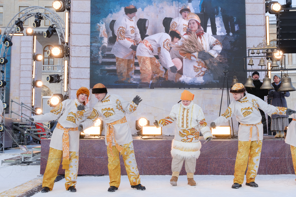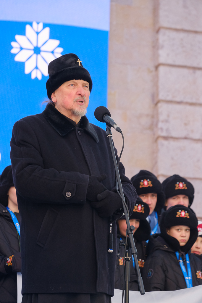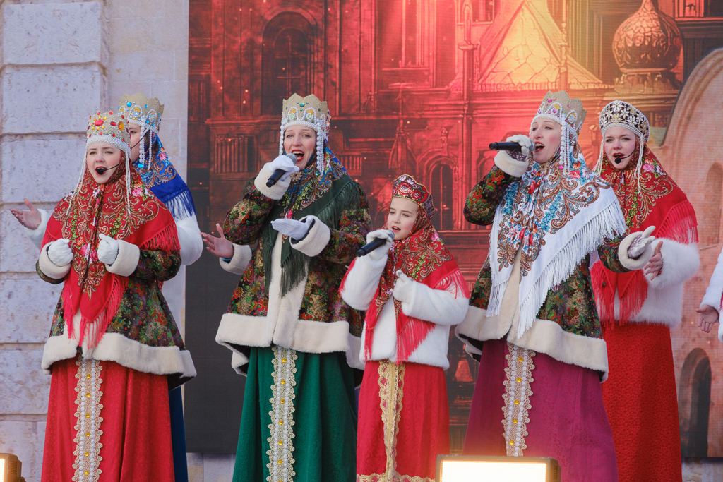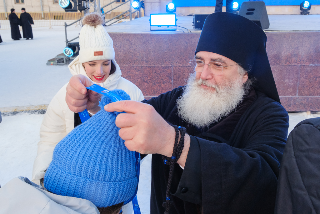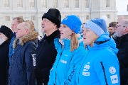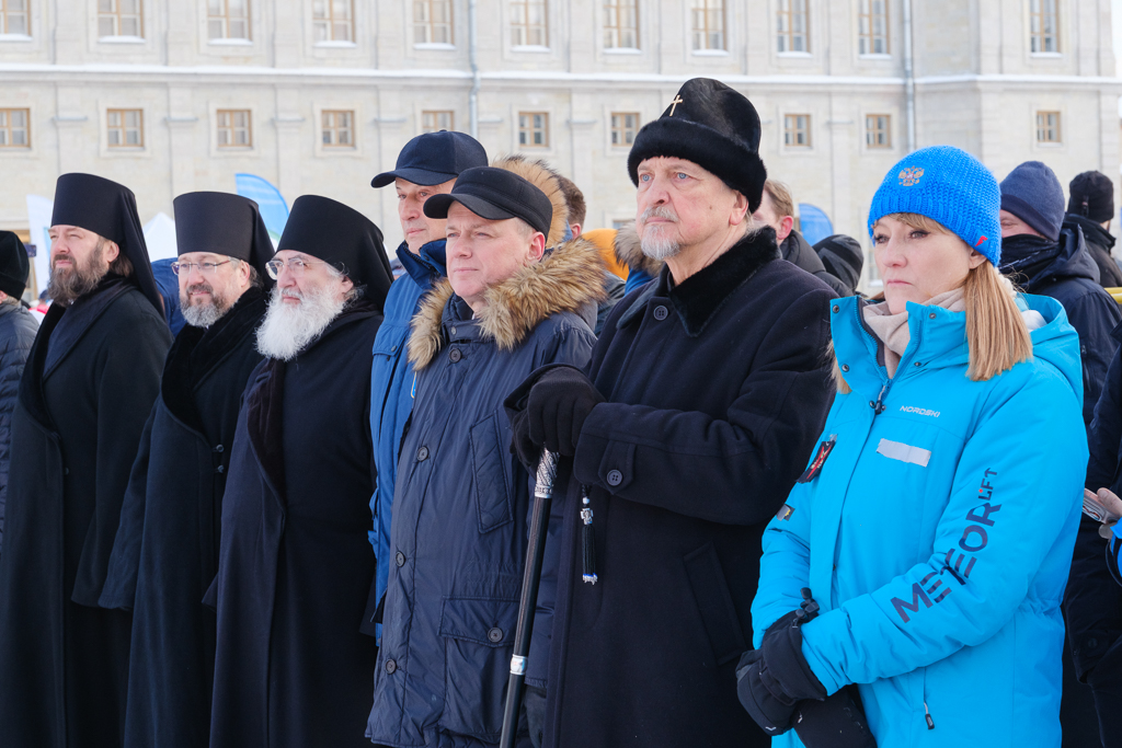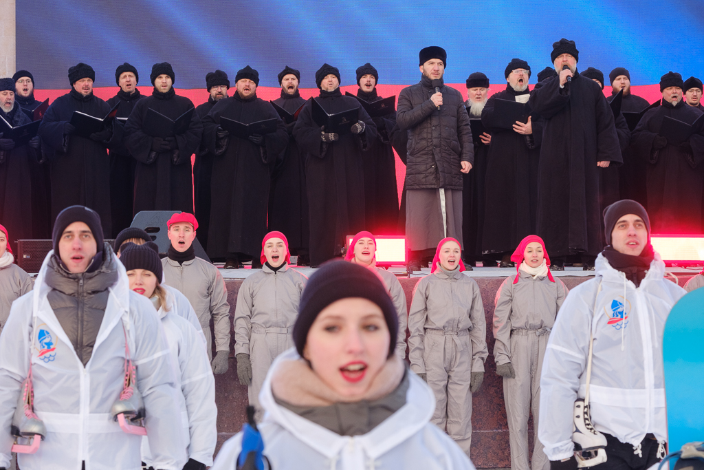 Хор духовенства, спортсмены и все участники театрализованного действа исполнили гимн России.