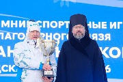 Кубком "За волю к победе" председатель Патриаршей комиссии по вопросам физкультуры и спорта митрополит Мурманский и Мончегорский Митрофан наградил команду Курской области.
