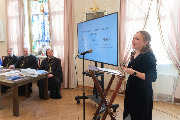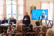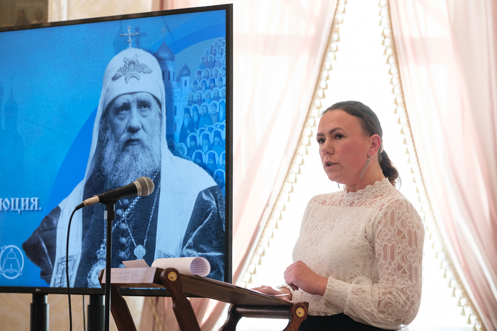 Полина Бавина рассказала, как возникла эта тема. Во время поездки с детьми в Константино-Еленинский монастырь они увидели там планшетную выставку, посвященную священномученику Философу Орнатскому, и заинтересовались его личностью и житием. Вместе с педагогами ребята работали с архивными документами в электронных библиотеках, сотрудничали с научно-просветительским центром обители. В судьбе отца Философа можно найти много поучительного для подрастающего поколения. Например, на детей произвело большое впечатление, что, когда началась Первая мировая война, семья Орнатских отдала свою квартиру у Казанского собора, чтобы в ней разместили раненых солдат. Полина Бавина подробно остановилась на просветительской деятельности, которую вел протоиерей Философ Орнатский: он был членом Думской комиссии по образованию, активно участвовал в деятельности Общества распространения религиозно-нравственного просвещения, открыл техническое училище. Событием, предопределившим преследование со стороны безбожной власти и последующую гибель отца Философа, стала организация общегородского крестного хода, когда большевики хотели отобрать Александро-Невскую лавру. Были прочитаны стихи иеромонаха Романа о мученической кончине отца Философа.