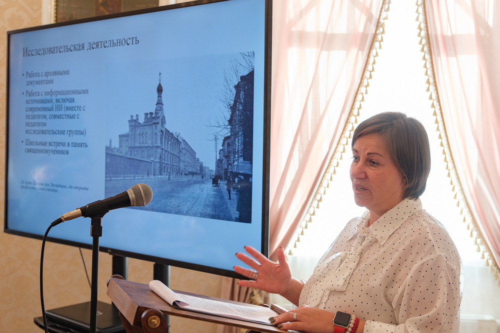 Замдиректора по воспитательной работе школы № 253 имени капитана 1-го ранга Павла Державина Полина Бавина представила доклад "Изучение школьниками духовных подвигов церковных деятелей в период гонений советской властью на примере служения Философа Орнатского", подготовленный совместно с директором школы Надеждой Фурсовой.