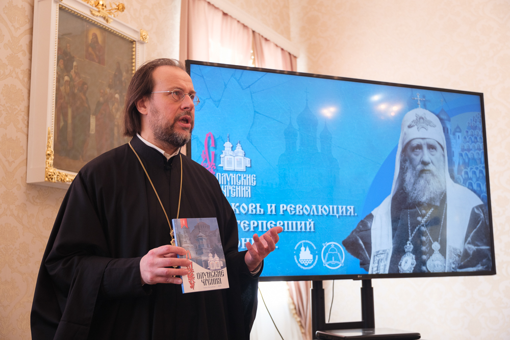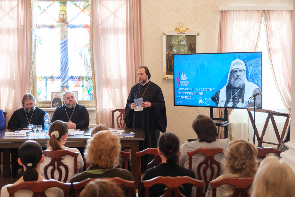 Настоятель храма святых апостолов Петра и Павла в Дибунах, доцент кафедры социально-гуманитарных наук Северо-Западного университета протоиерей Стахий Савицкий выступил с докладом "Труды святителя Тихона (Беллавина) на ниве духовного просвещения".