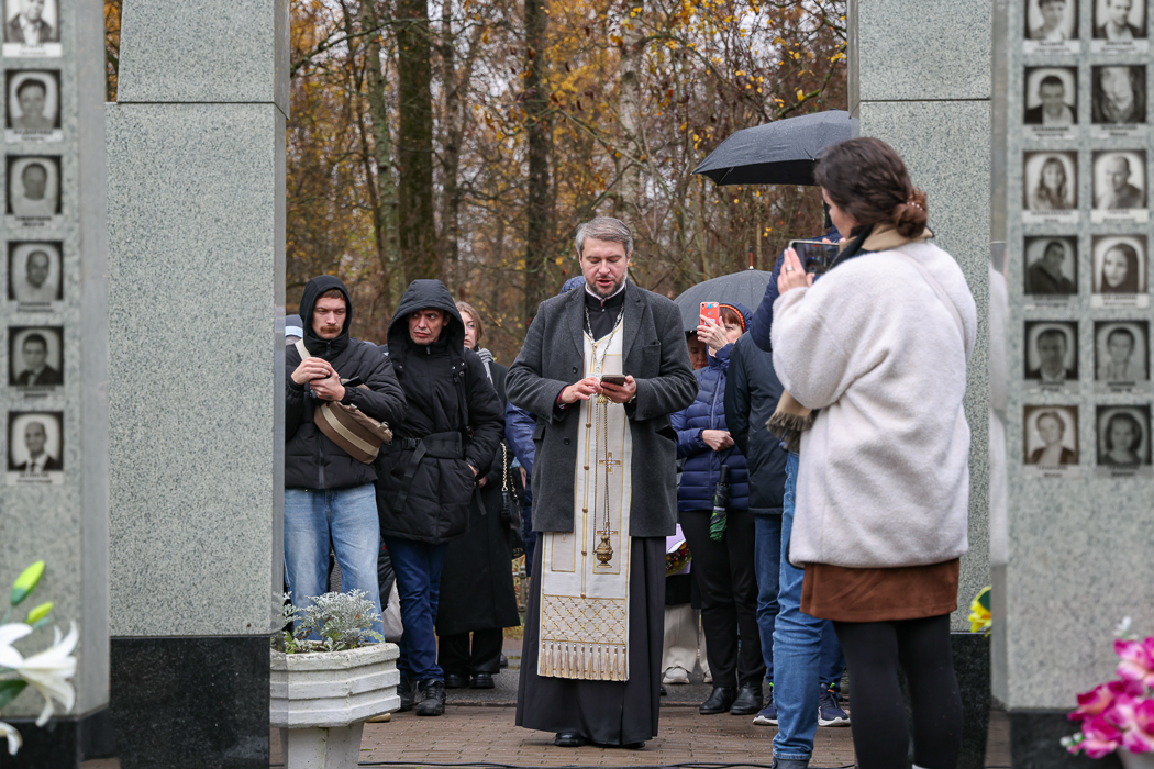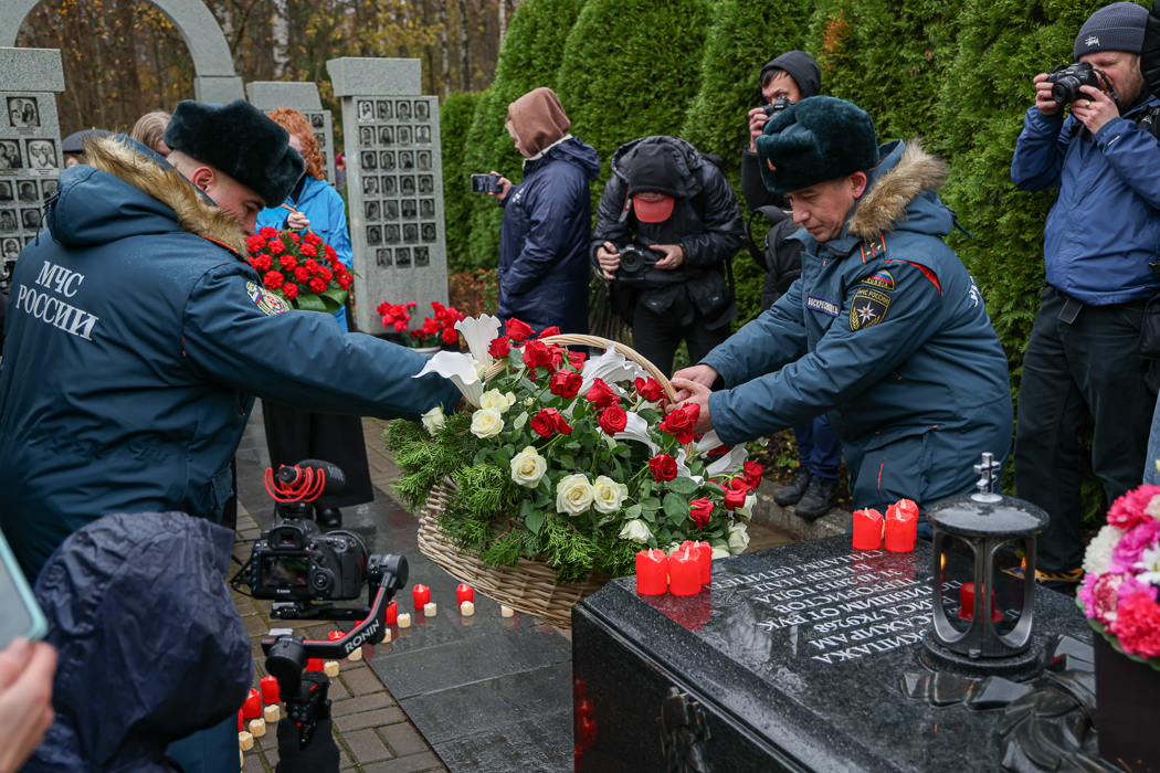На Серафимовском кладбище у мемориала "Сложенные крылья" отец Сергий отслужил литию, поименно назвав всех погибших пассажиров и членов экипажа.