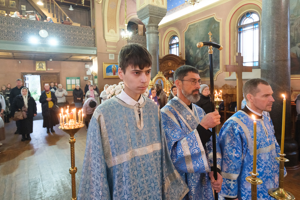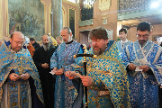 Его Высокопреосвященству сослужили секретарь епархиального управления протоиерей Сергий Куксевич, настоятель и благочинный Новоладожского округа протоиерей Алексий Волков с клиром, наместник Никольского монастыря Старой Ладоги игумен Филарет (Пряшников), иерей Артемий Наумов и другие священнослужители ...