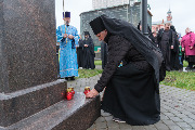 Под звон колоколов верующие, держа в руках зажженные свечи, прошли из храма к памятнику святому благоверному князю Александру Невскому на территории обители, где была отслужена заупокойная лития за вождей и воинов, ополченцев, которые в 1612 году спасли Русь от польских захватчиков, а также о всех защитниках России. Для Старой Ладоги особо значима дата освобождения страны от иноземных захватчиков: в период смуты в 1611 году город был захвачена шведами. Враги жгли, разрушали и разоряли первую столицу Руси. По преданию, завоеватели тогда обосновались в Никольском монастыре, убив при его захвате 13 монахов.