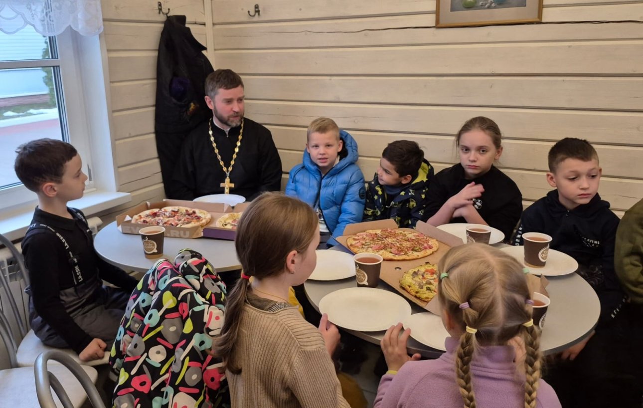 Беседу провел клирик храма иерей Михаил Лунев. Были затронуты три темы - о вере, о том, что нельзя обижать слабых и о дружбе. Ребята внимательно слушали и задавали вопросы.
