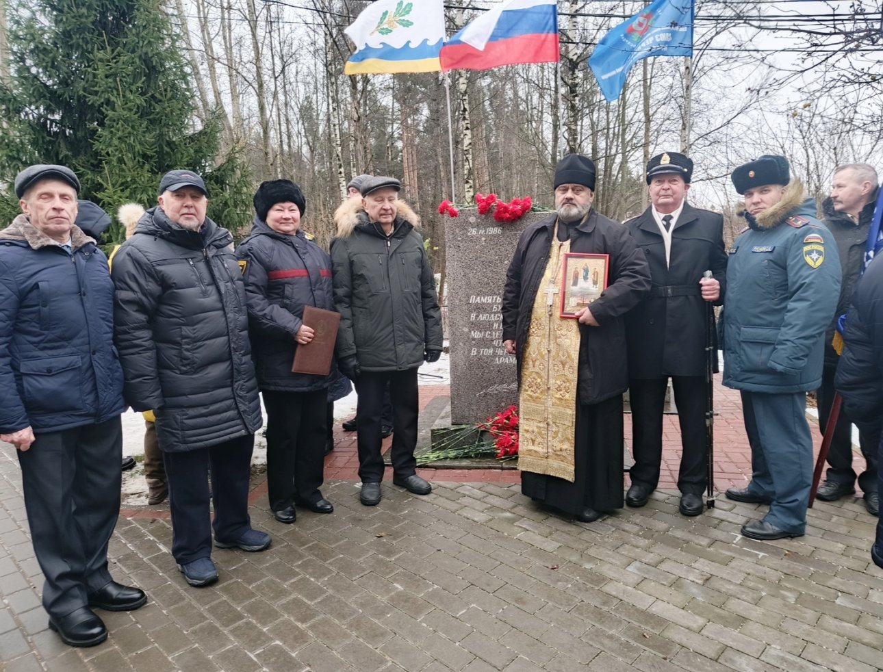 Настоятель храма Тихвинской иконы Божией Матери архимандрит Гавриил (Коневиченко) отслужил заупокойную литию о погибших и усопших ликвидаторах. Из храма была принесена копия чудотворной иконы "Чернобыльский Спас", написанная в Троице-Сeргиевой лавре. Священник благословил молящихся этим образом.