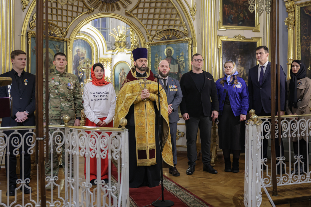 Богослужение совершил настоятель иерей Илия Макаров. За богослужением молились более 100 волонтеров и руководителей добровольческих организаций Санкт-Петербурга, а также участники СВО.
