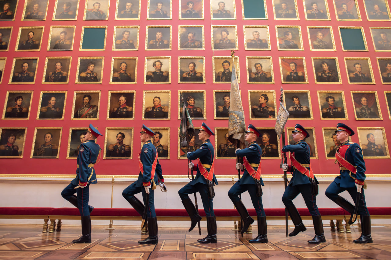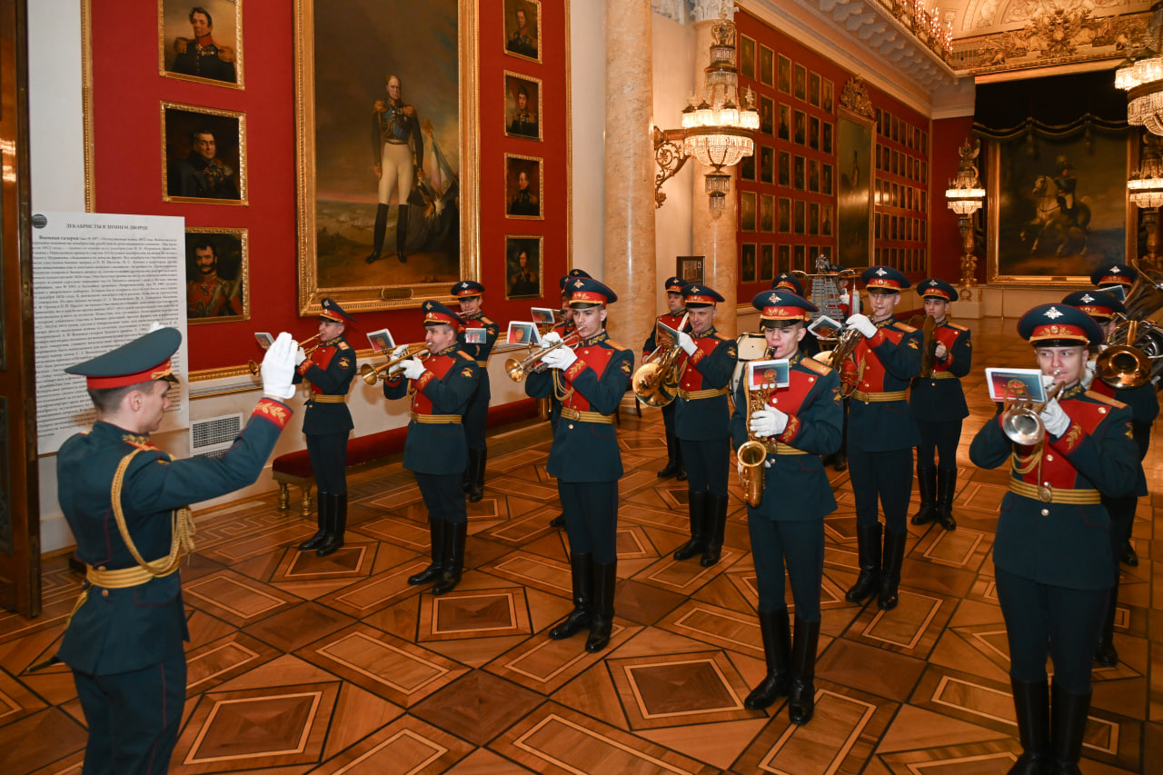 В Военную галерею 1812 года ротой почетного караула были внесены реликвии полков - участников войны с Наполеоном: штандарты "За отличие" Митавского гусарского полка и георгиевский Изюмского гусарского полка, знамя лейб-гвардии Семеновского полка.