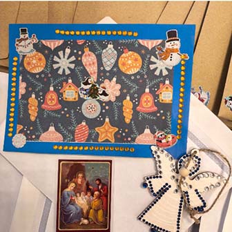 Воспитанники воскресной школы "София" вместе с родителями и учителями подготовили более ста писем с поздравлениями, добрыми пожеланиями, рисунками и написанными своей рукой молитвами. Для каждого защитника дети расписали и украсили деревянных ангелочков, вложив в письмо иконку и рождественскую открытку.