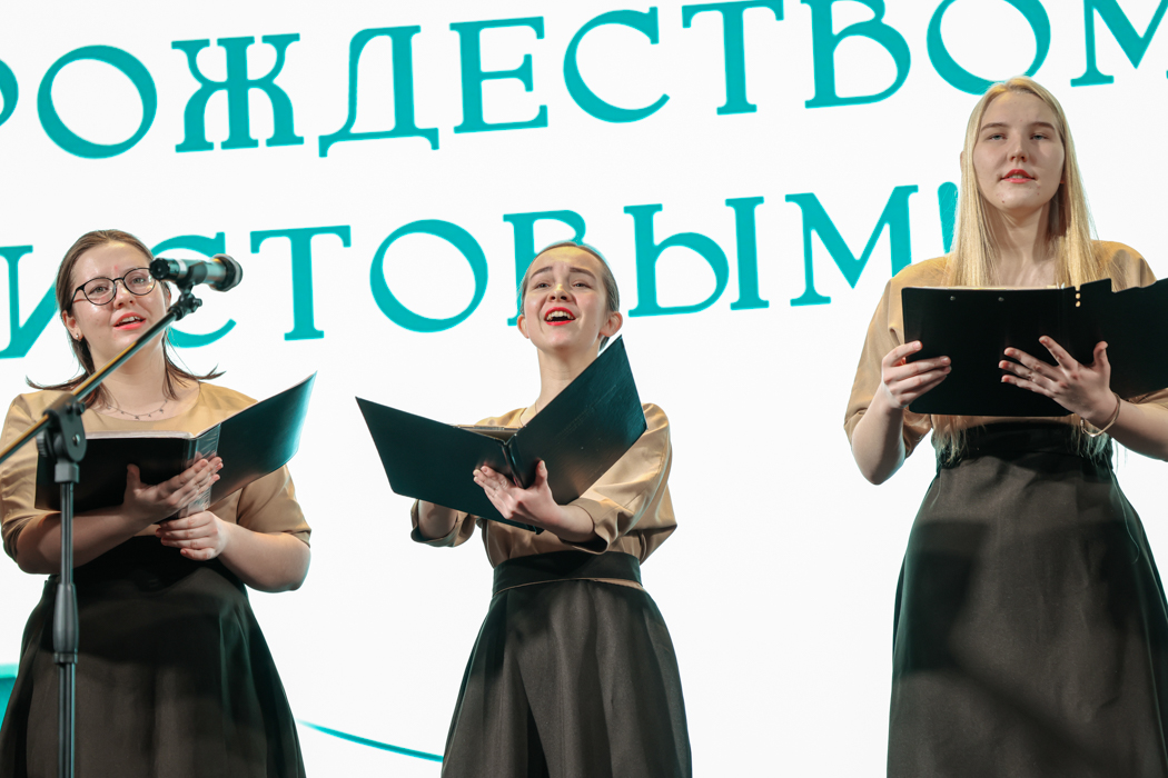 В исполнении любительского хора собора под руководством Анастасии Коздринь прозвучал рождественский гимн "Радуйся, мир" на слова Исаака Уоттса и музыку Георга Фридриха Генделя.