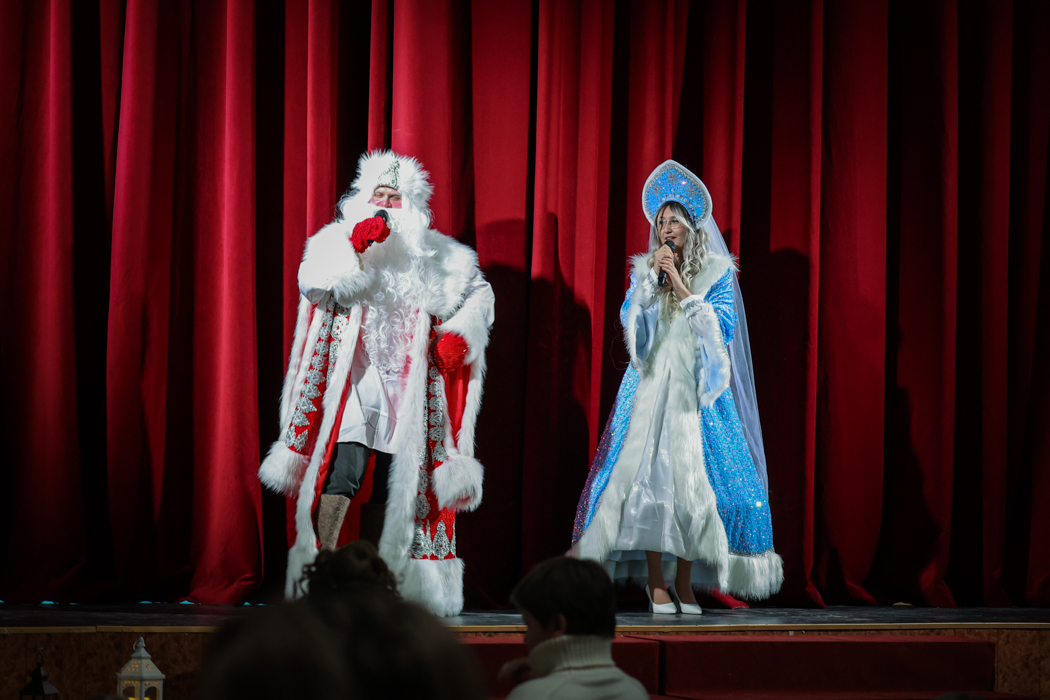 Концертную программу вели Дед Мороз со Снегурочкой - они весело и с юмором объявляли номера, общались между собой и со зрителями.