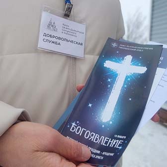 Пять приходских добровольцев-миссионеров вышли к стоящим за водой людям. Они рассказали о смысле праздника Крещения Господня, важности освящать не только воду, но и самих себя через участие в Таинствах Церкви. Всем желающим раздали листовки, разработанные епархиальным миссионерским отделом. Во время богослужений и после них добровольцы помогали в храме.