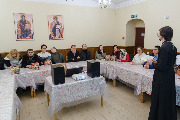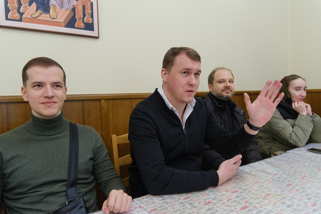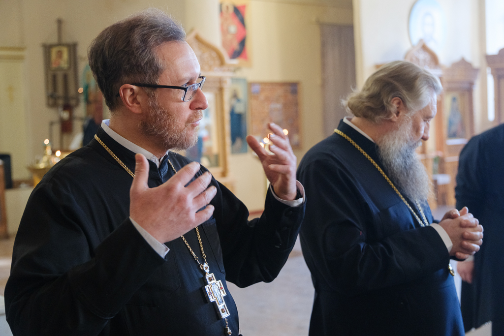 В приходском доме состоялась беседа со священнослужителями. Участников приветствовал протоиерей Константин Головатский.
