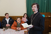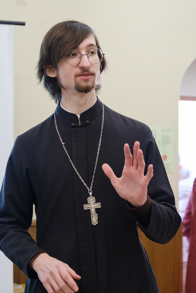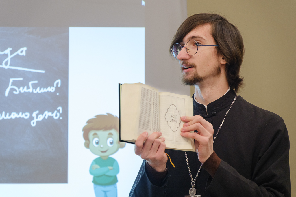 Иерей Сергий Муравьев посвятил выступление Новому Завету. Он подчеркнул, что, хотя Писание адресовано не современному человеку, многое не изменилось и подходит нам, наша цель - забрать лучшее. Лектор остановился на Послании апостола Павла к Тимофею. Это ближайший подвижник апостола, христианин второго поколения. Послание интересно тем, что обращено не к общине, а к конкретному человеку. Священник подчеркнул, что Исаак и Иаков стали избранниками Божиими не по человеческим принципам, оба не были старшими сыновьями, - их выбрал Господь. И Тимофей - не кровный родственник апостола Павла, а духовное чадо.