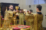 Божественную литургию и молебен совершил благочинный протоиерей Александр Пашков в сослужении протоиерея Павла Феера, председателя епархиального отдела по делам молодежи протоиерея Константина Головатского, настоятеля протоиерея Владимира Гончаренко и других клириков благочиния.